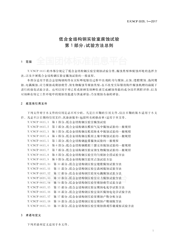 T/CSCP 0035.1-2017 低合金结构钢实验室腐蚀试验 第1部分:试验方法总则
