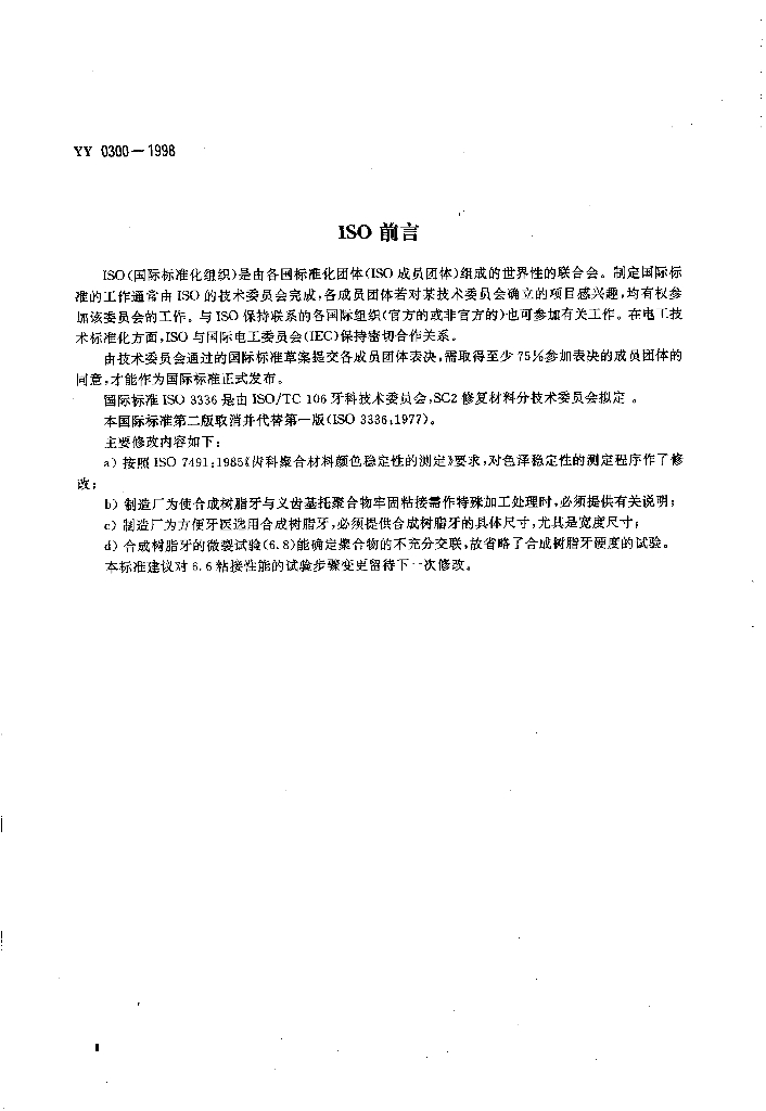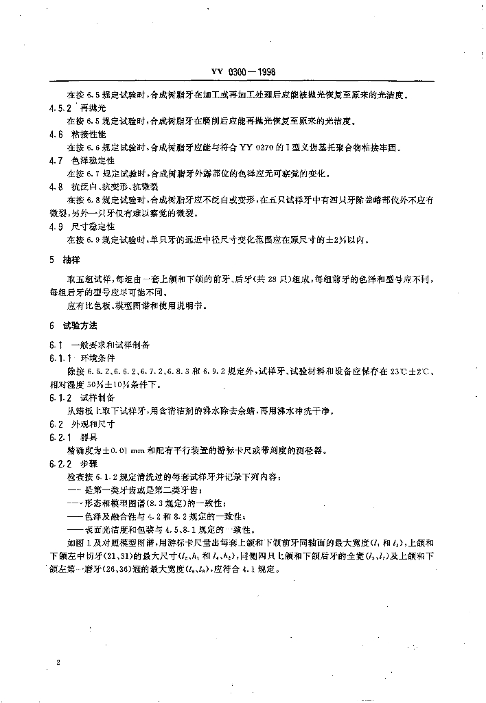 YY 0300-1998 牙科学合成树脂牙