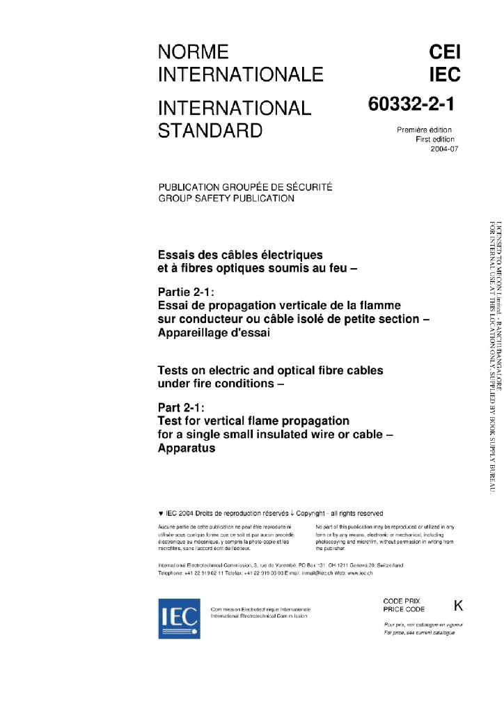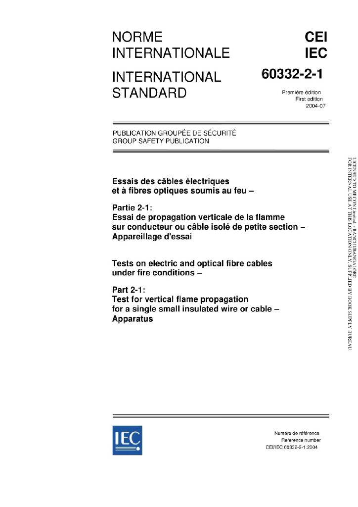 IEC 60332-2-1:2004 在火焰条件下电缆和光缆的试验 第2-1部分:单根细绝缘电线或电缆的垂直燃烧试验-设备