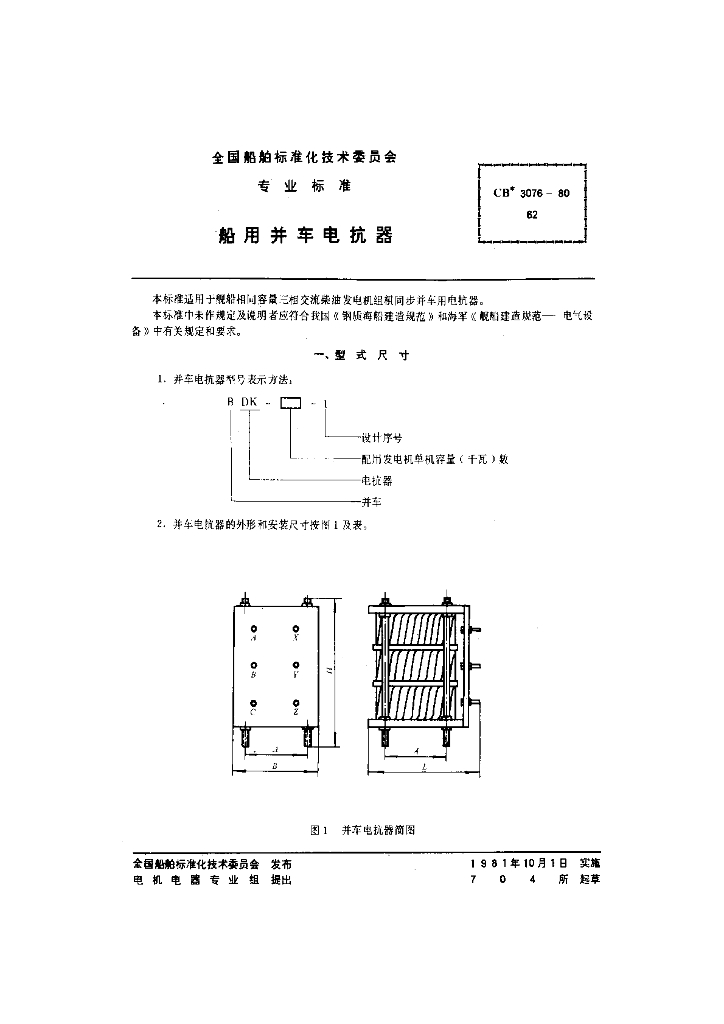 CB 3076-1980 船用并车电抗器