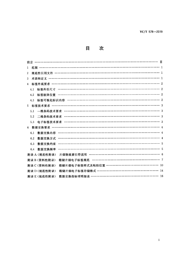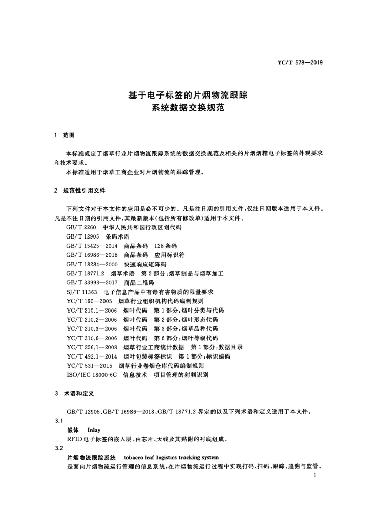 YC/T 578-2019 基于电子标签的片烟物流跟踪系统数据交换规范