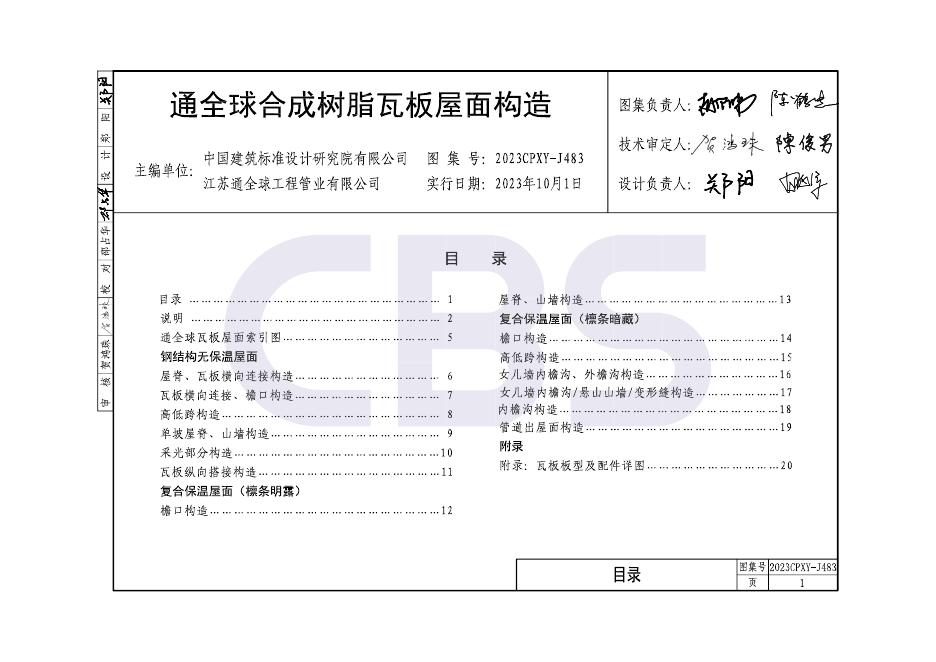 2023CPXY-J483 通全球合成树脂瓦板屋面构造专项图集
