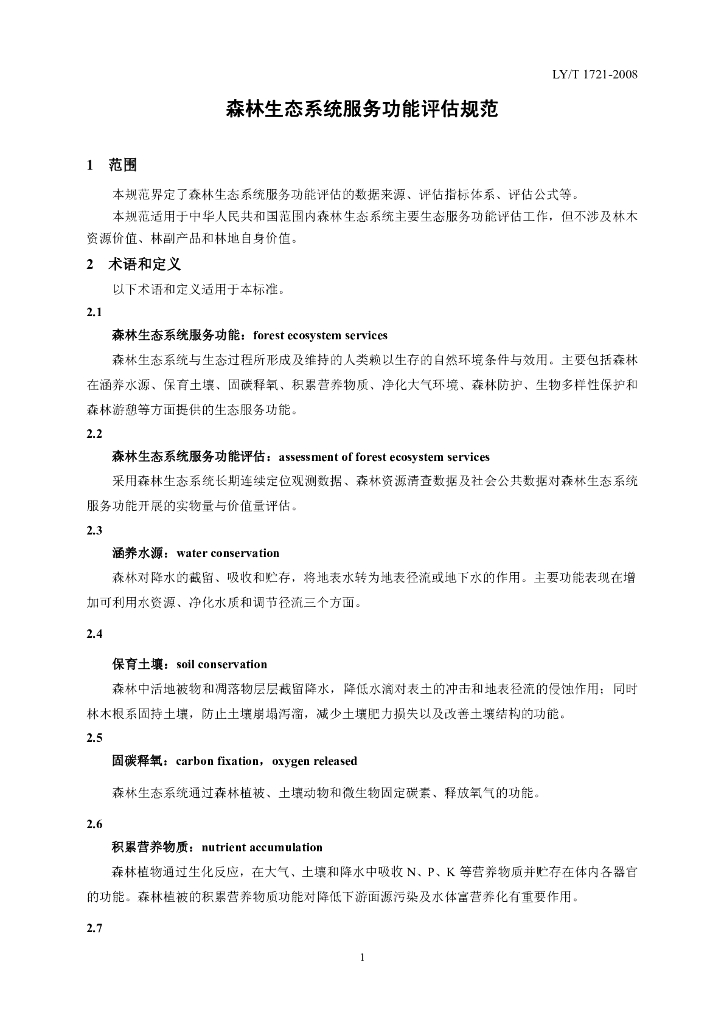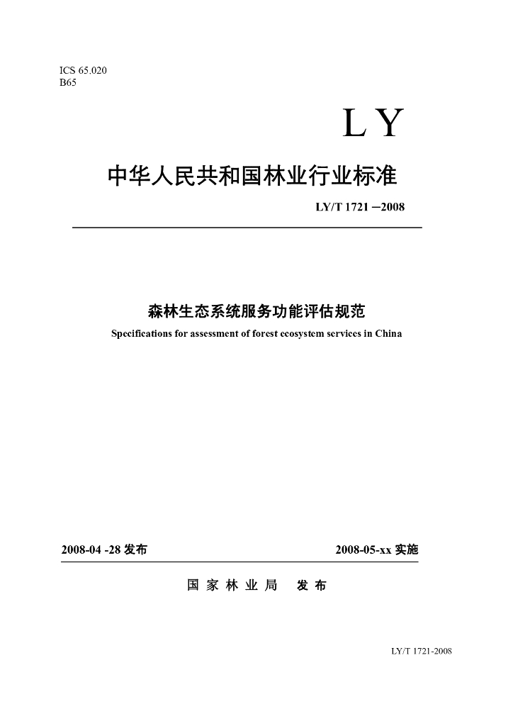 LY/T 1721-2008 森林生态系统服务功能评估规范
