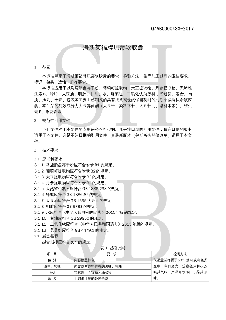 Q/ABCD 0043S-2017 海斯莱福牌贝蒂软胶囊