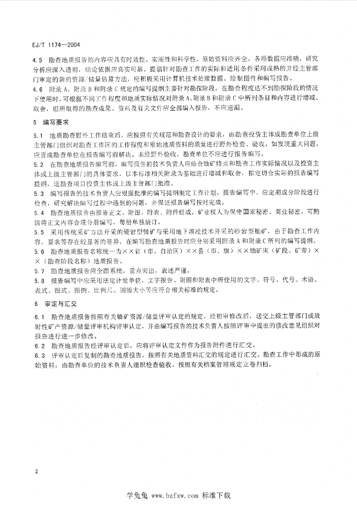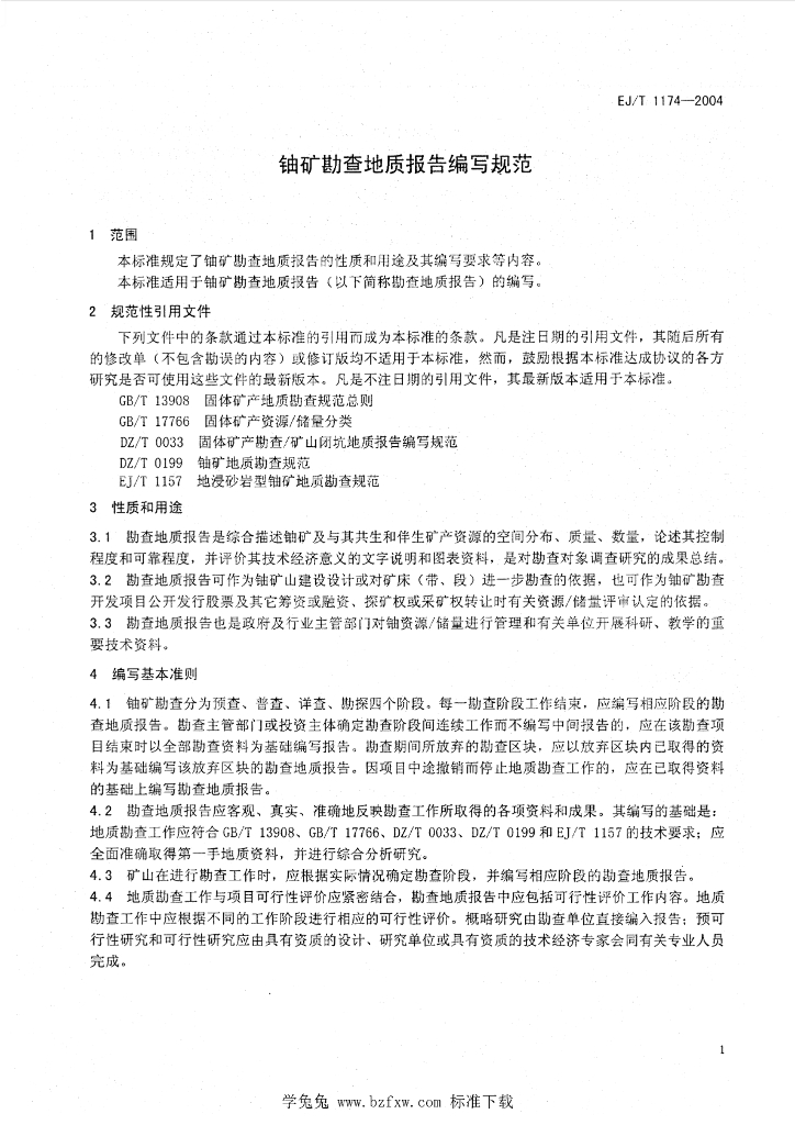 EJ/T 1174-2004 铀矿勘查地质报告编写规范