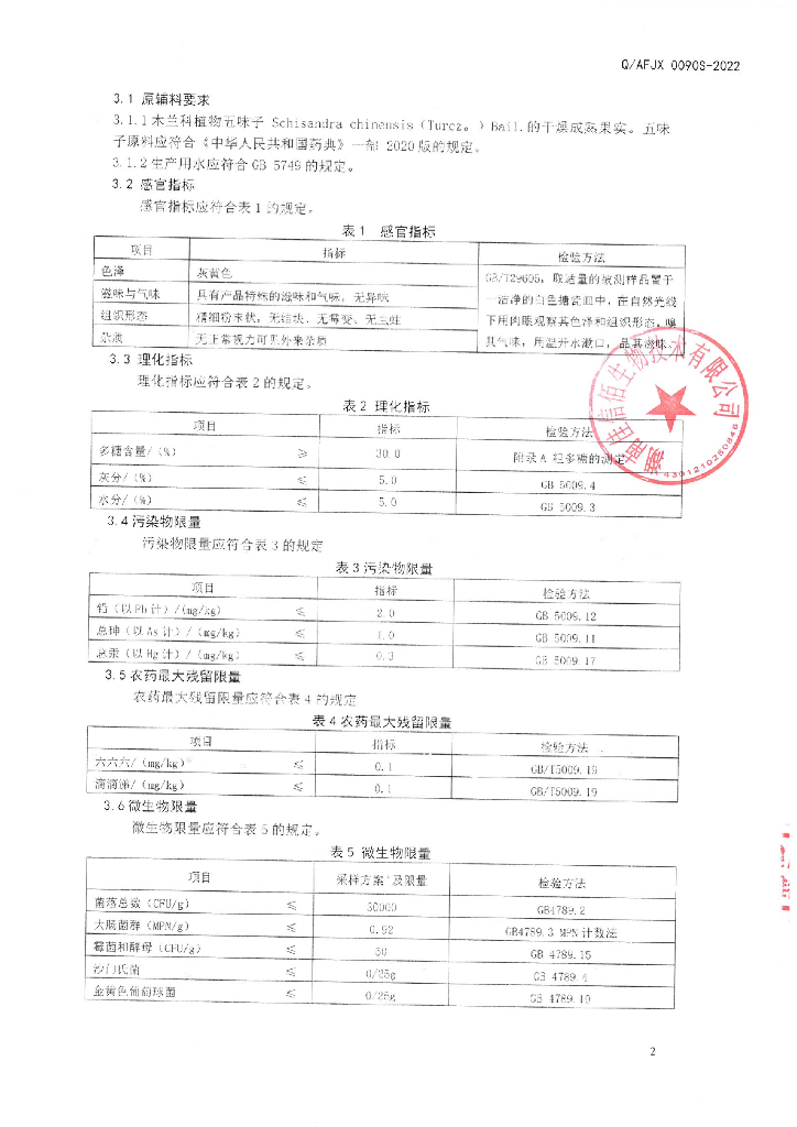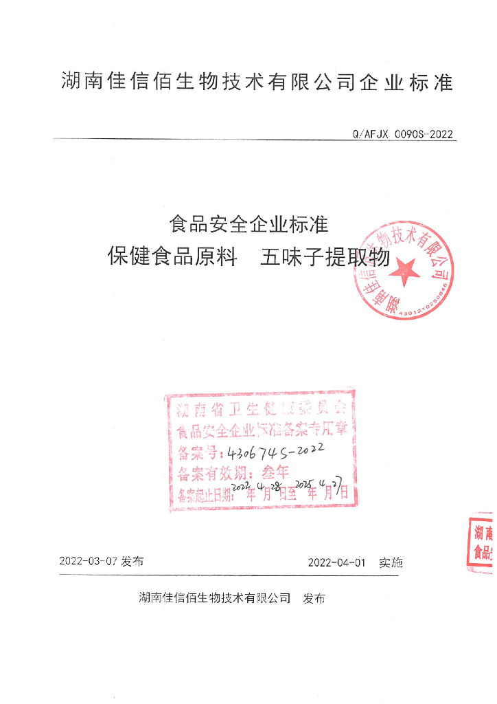 Q/AFJX 0090S-2022 保健食品原料 五味子提取物