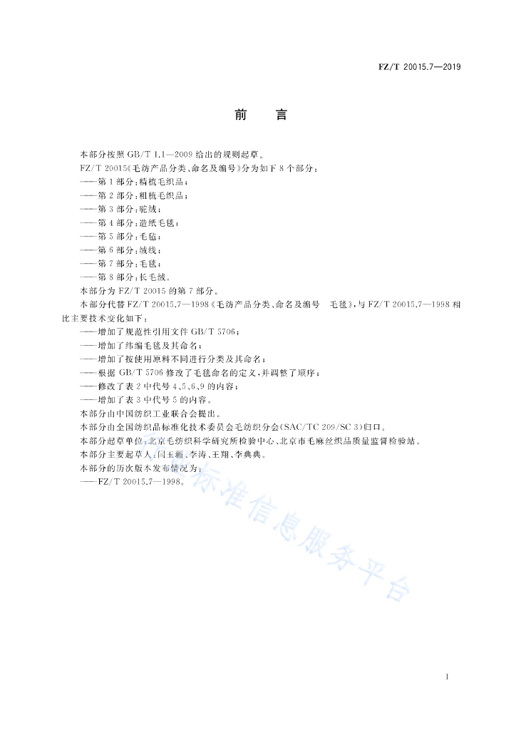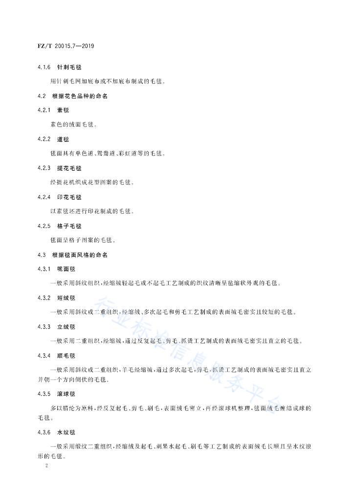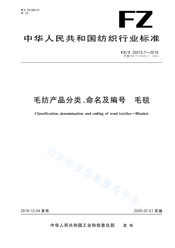 FZ/T 20015.7-2019 毛纺产品分类、命名及编号毛毯