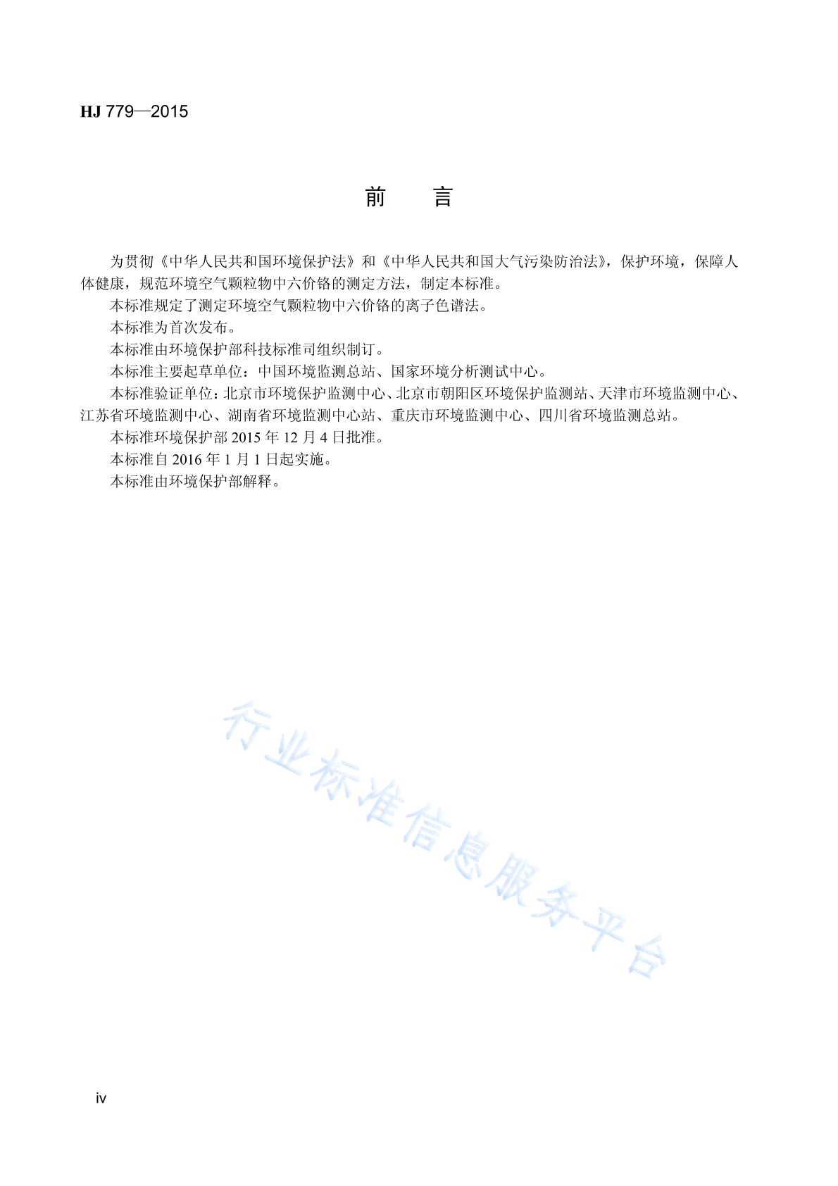 HJ 779-2015 环境空气 六价铬的测定 柱后衍生离子色谱法