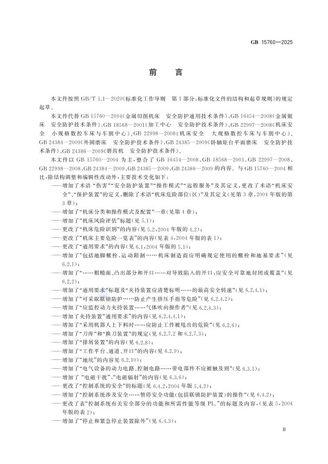 GB 15760-2025 金属切削机床 安全防护通用技术规范