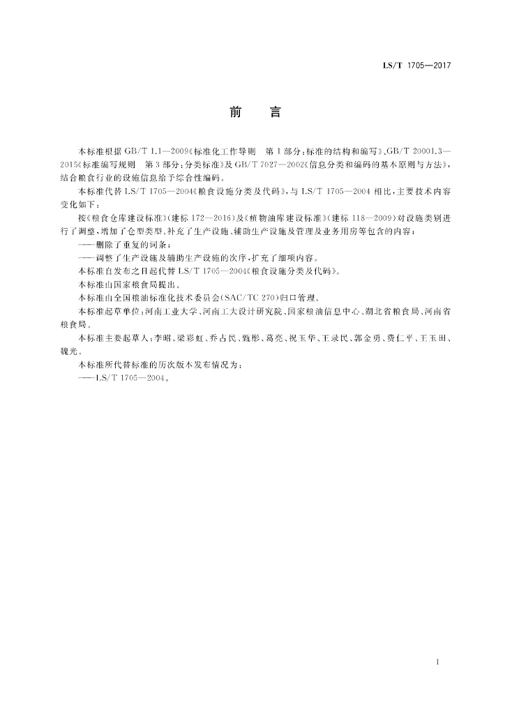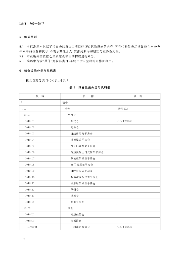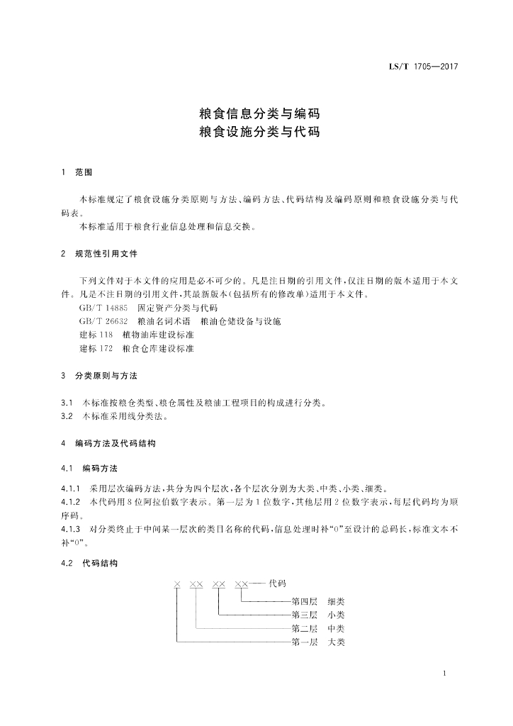 LS/T 1705-2017 粮食信息分类与编码 粮食设施分类与代码