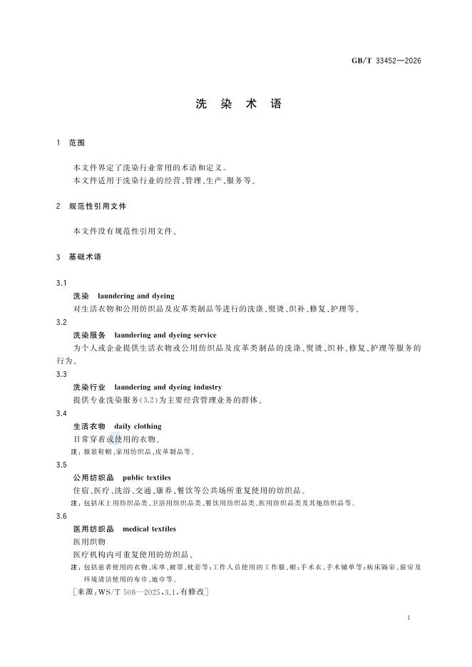 GB/T 33452-2026 洗染术语
