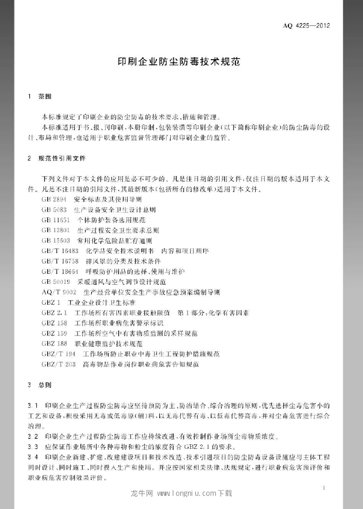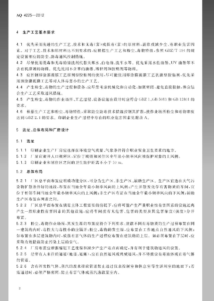 AQ 4225-2012 印刷企业防尘防毒技术规范