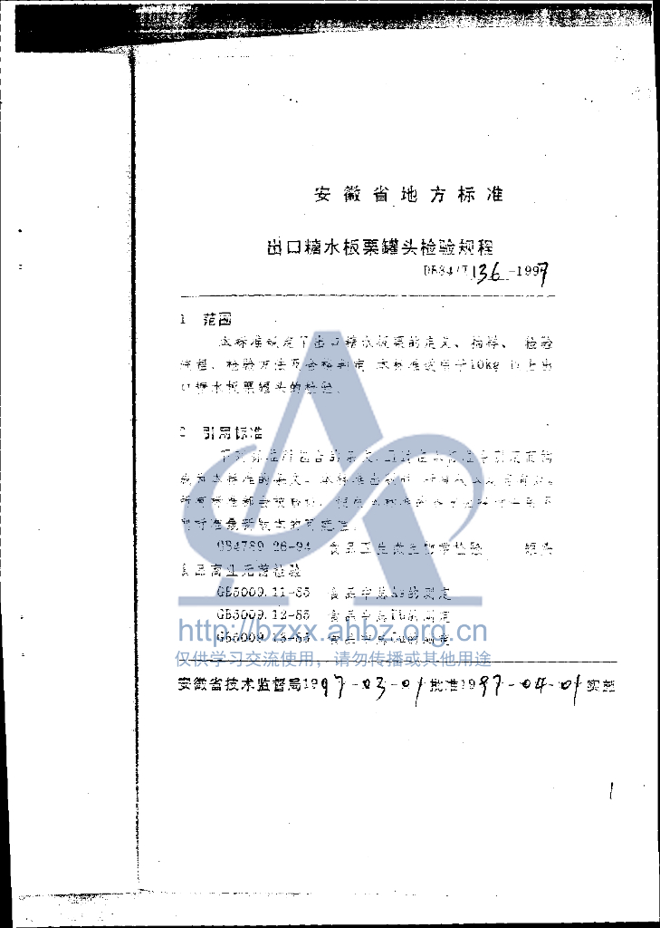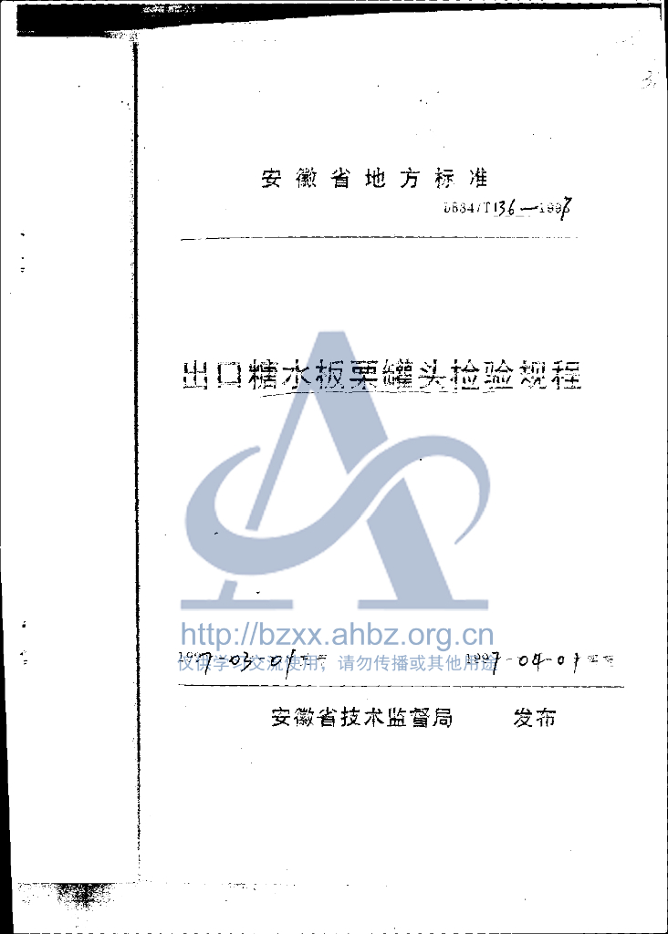 DB34/T 136-1997 出口糖水板栗罐头检验规程