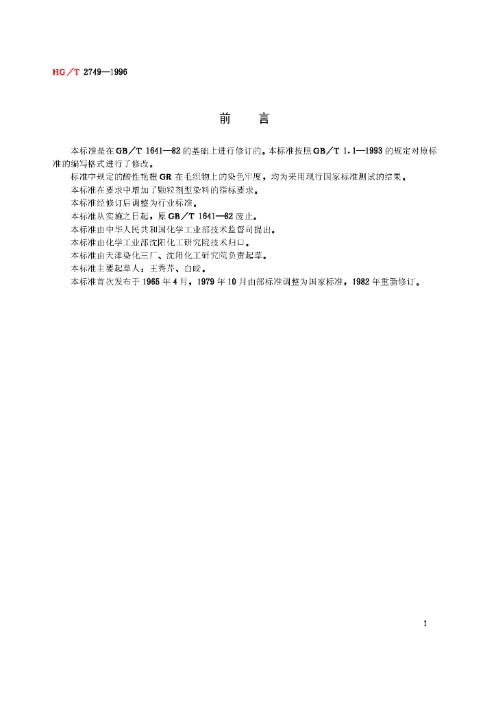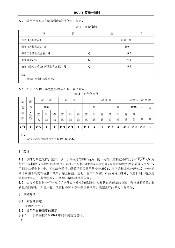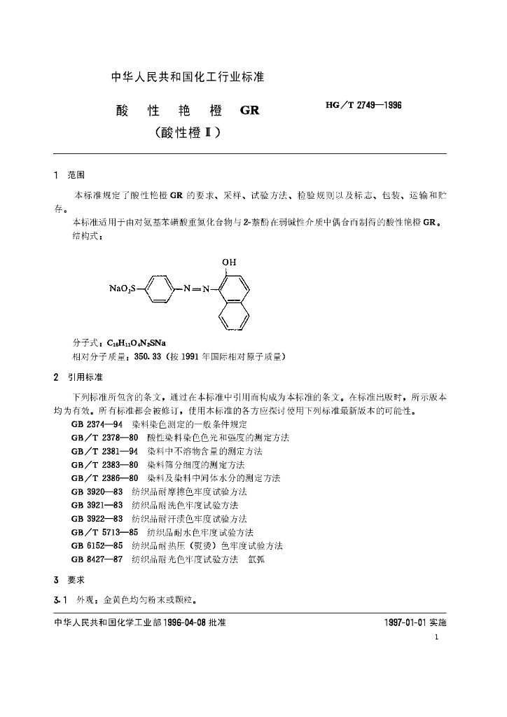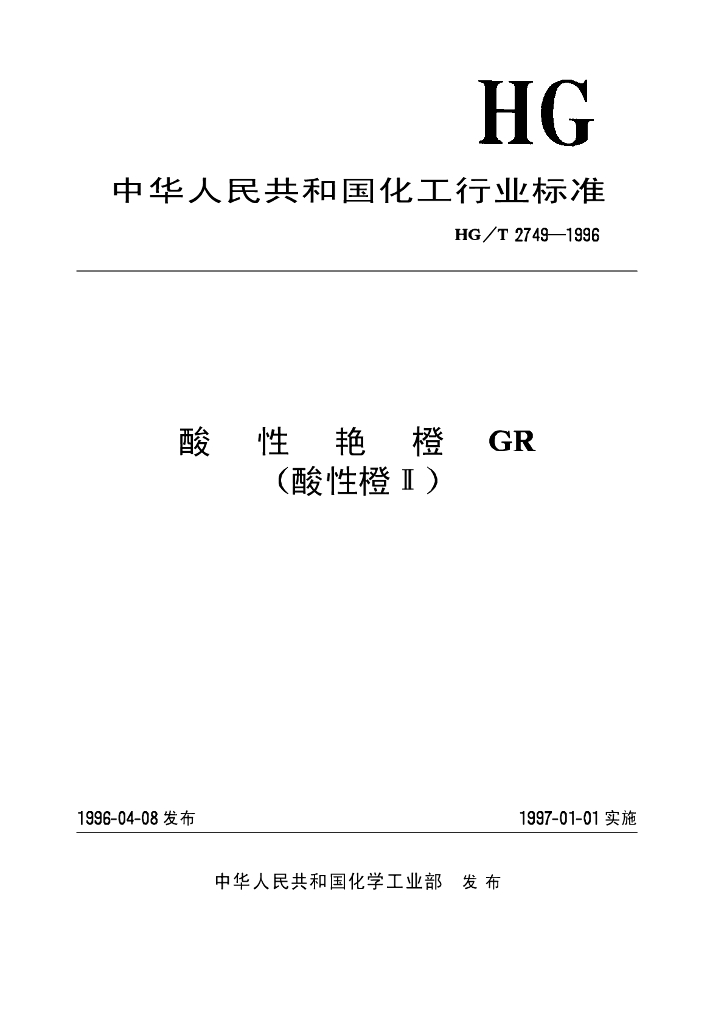 HG/T 2749-1996 酸性艳橙GR(酸性橙Ⅱ)