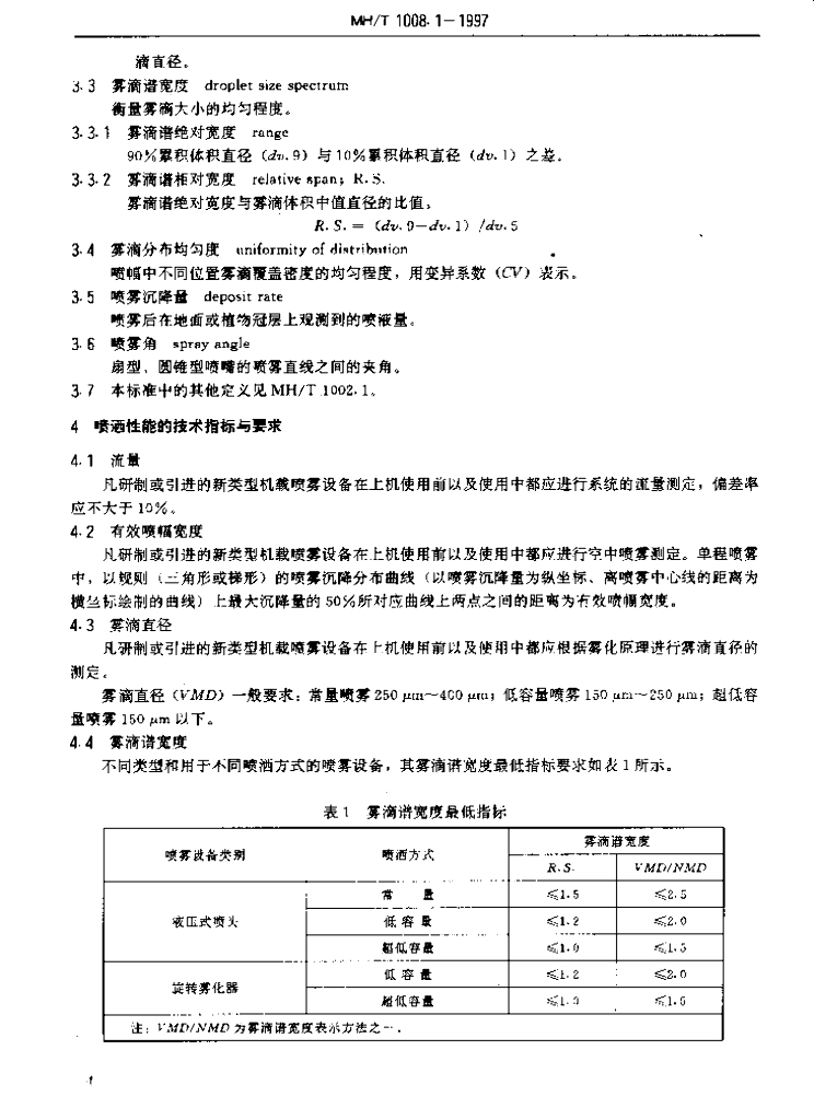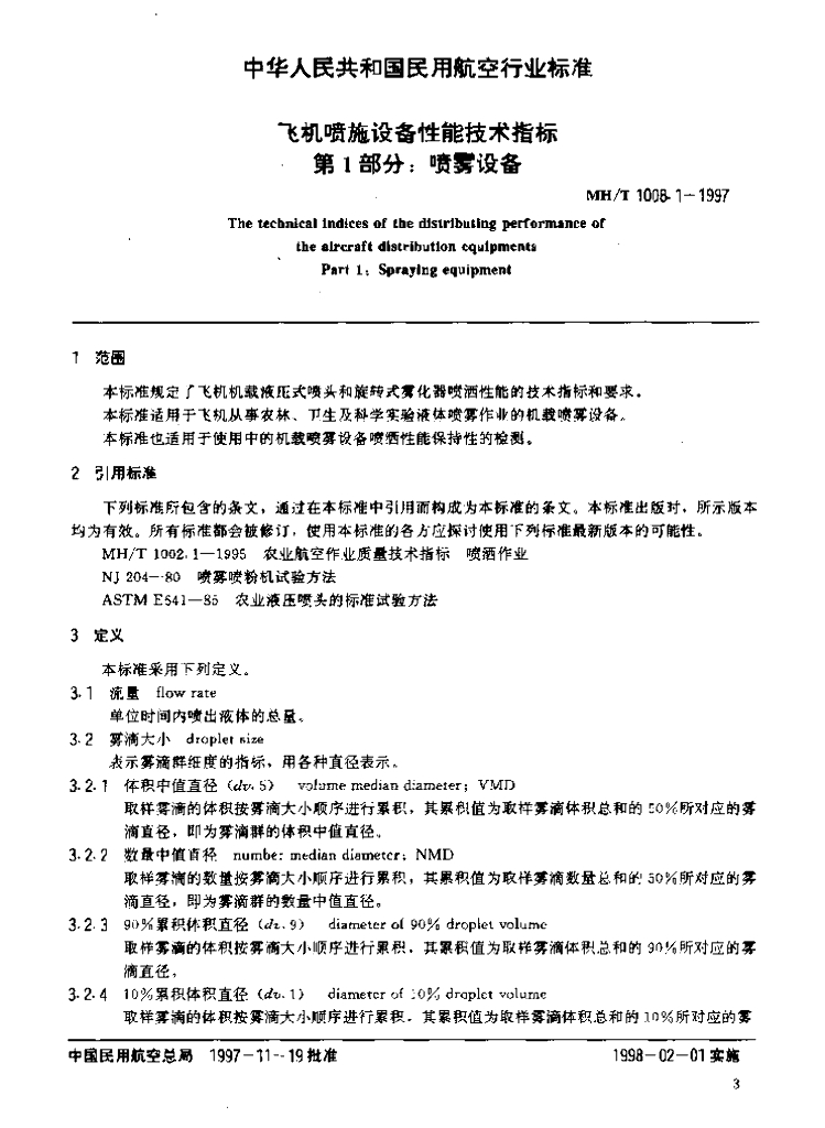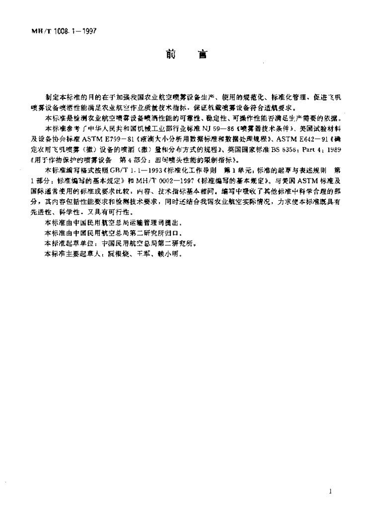 MH/T 1008-1997 飞机喷施设备性能技术指标