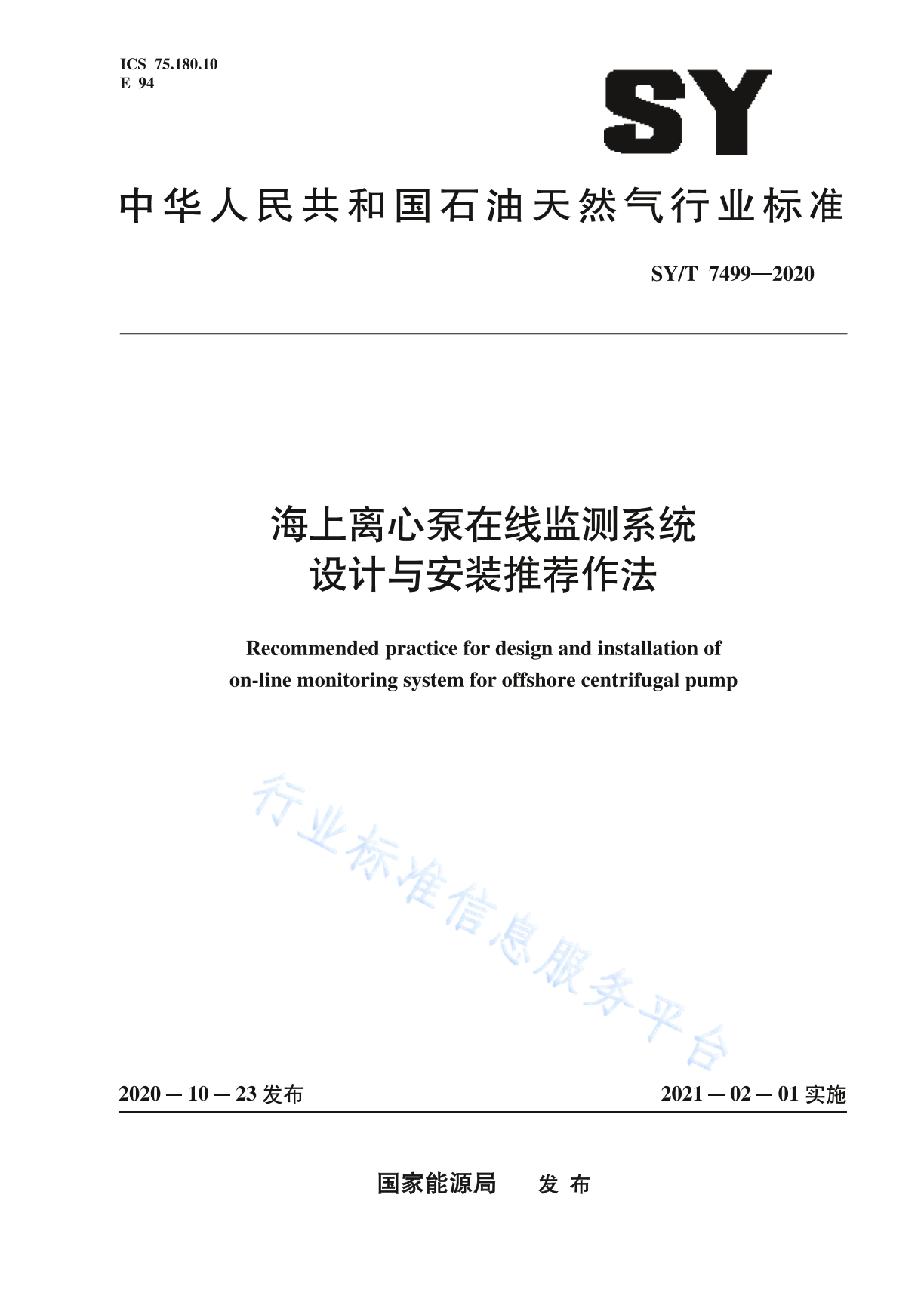 SY/T 7499-2020 海上离心泵在线监测系统设计与安装推荐作法