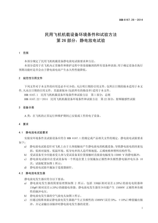 HB 6167.26-2014(2017) 民用飞机机载设备环境条件和试验方法 第26部分:静电放电试验