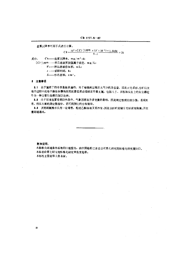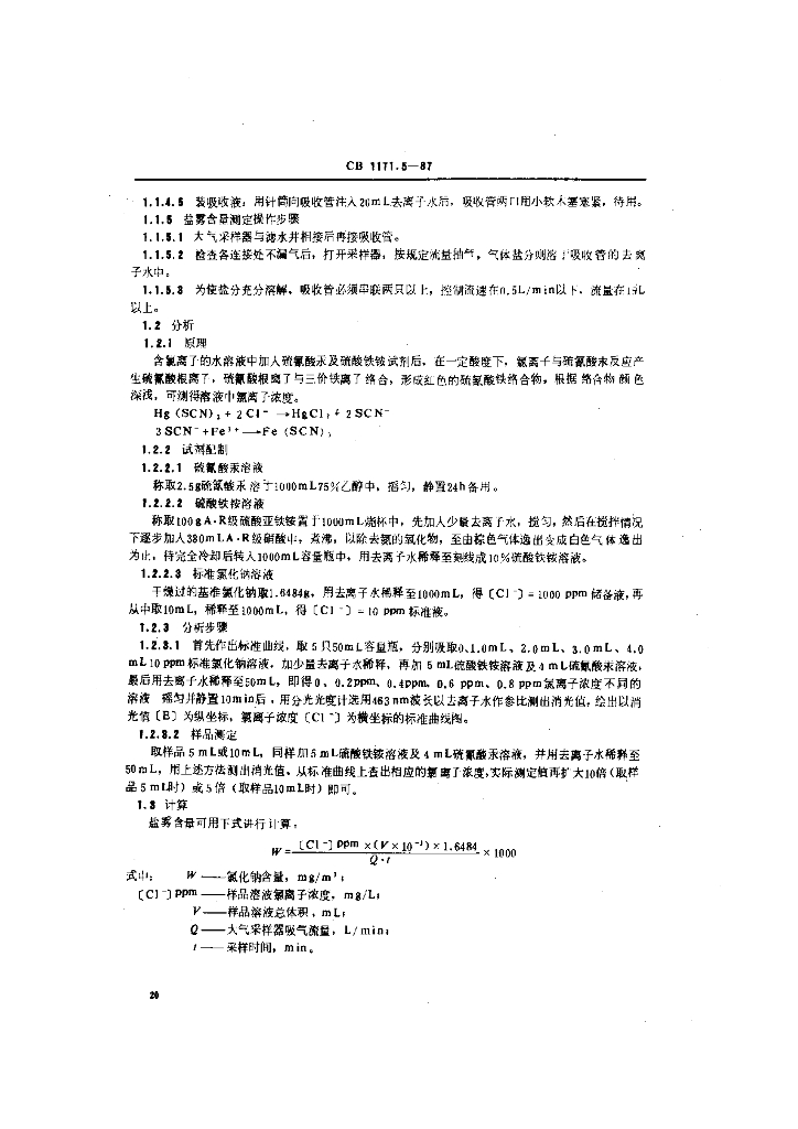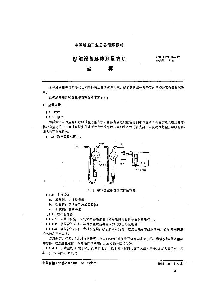 CB 1171.5-1987 船舶设备环境测量方法 盐雾
