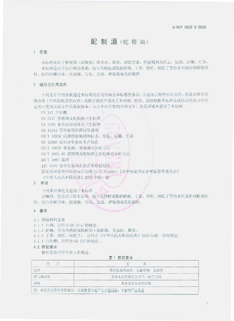 Q/RCY 0002S-2009 配制酒(蛇鞭酒)
