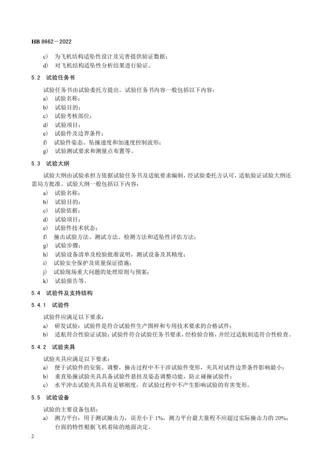 HB 8662-2022 民用飞机结构适坠性试验通用要求