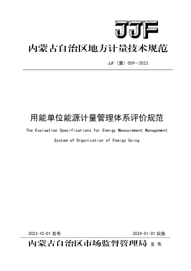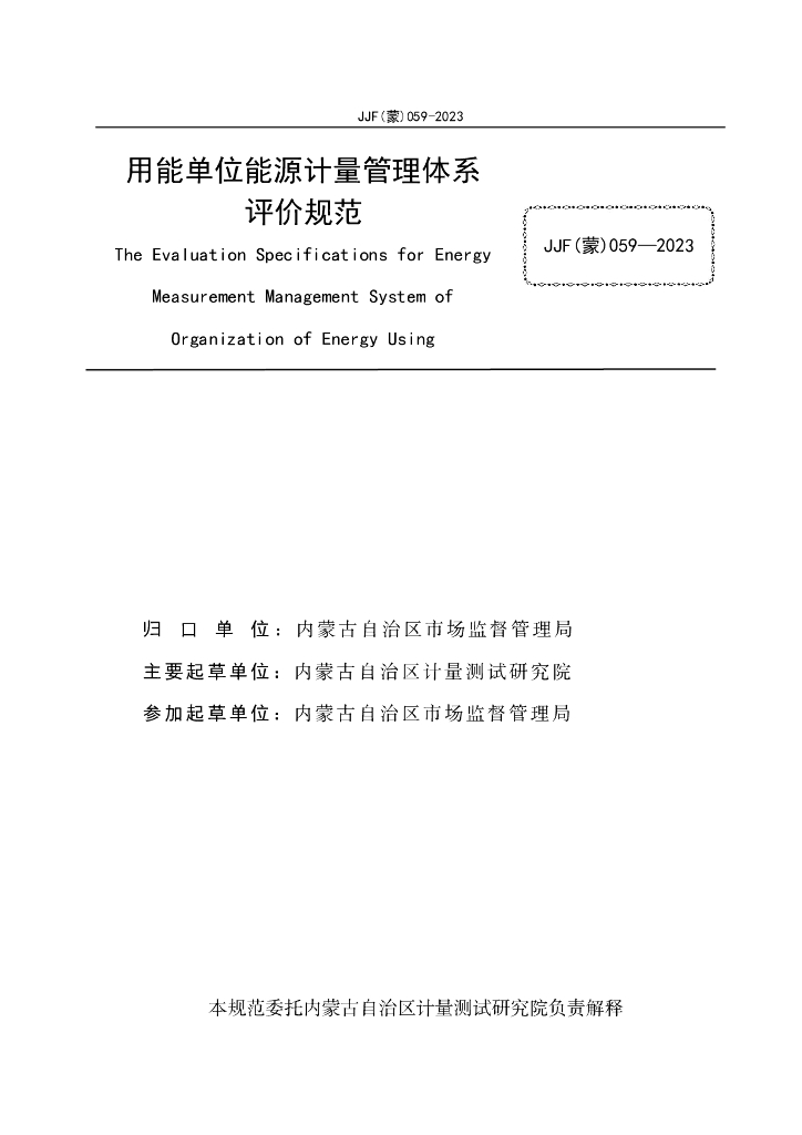 JJF(蒙)059-2023 用能单位能源计量管理体系评价规范