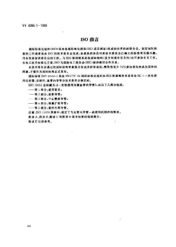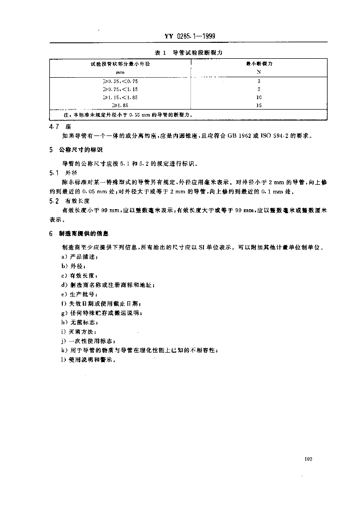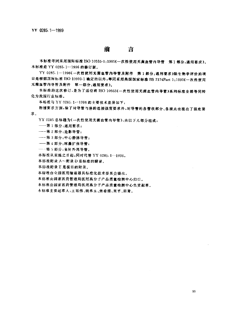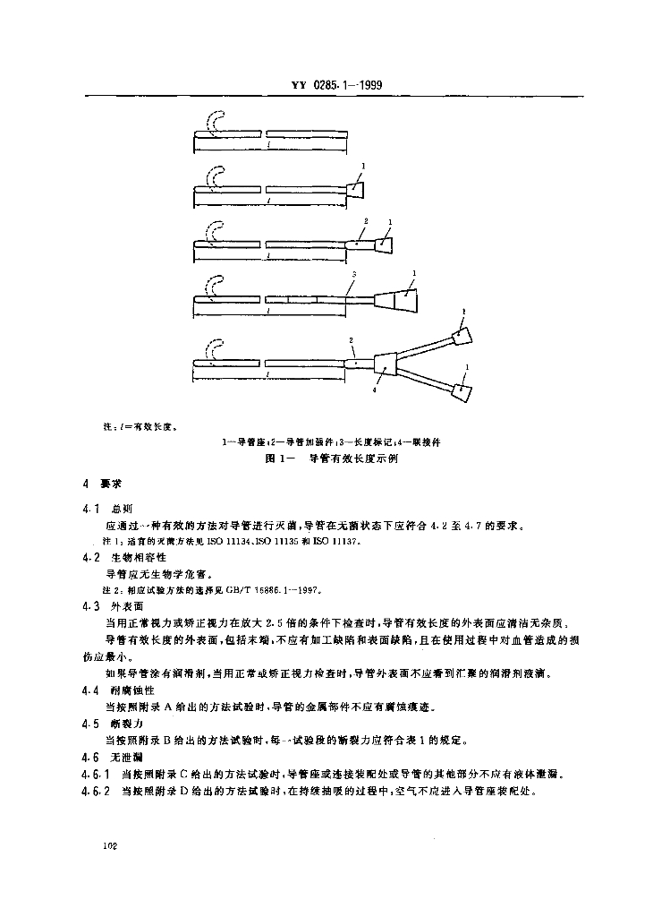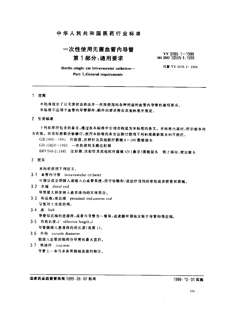 YY 0285.1-1999 一次性使用无菌血管内导管 第1部分:通用要求