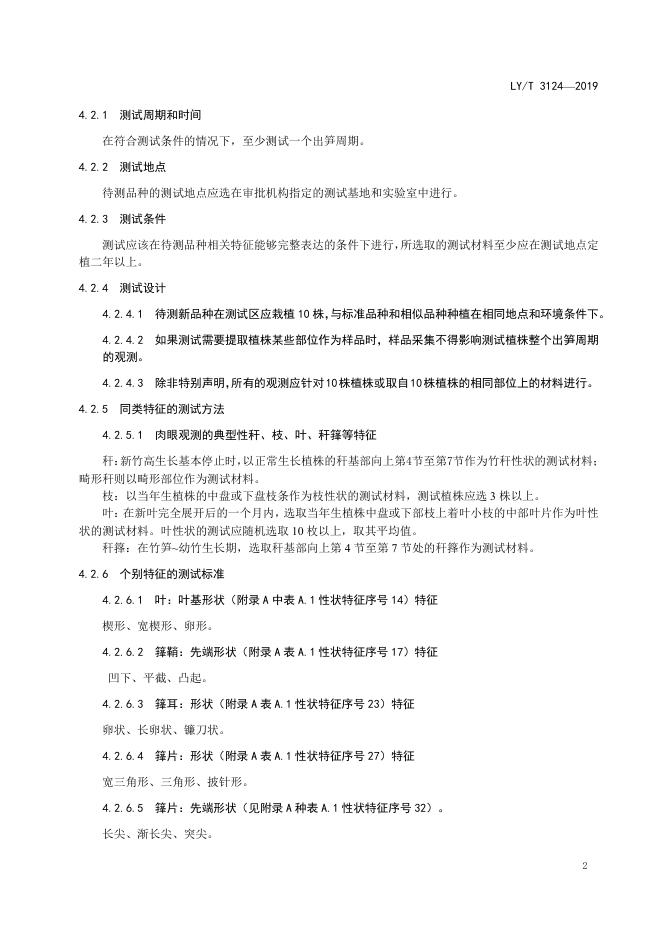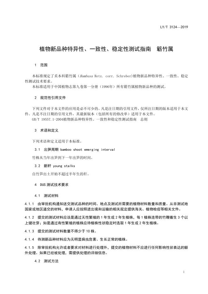 LY/T 3124-2019 植物新品种特异性、一致性、稳定性测试指南 簕竹属