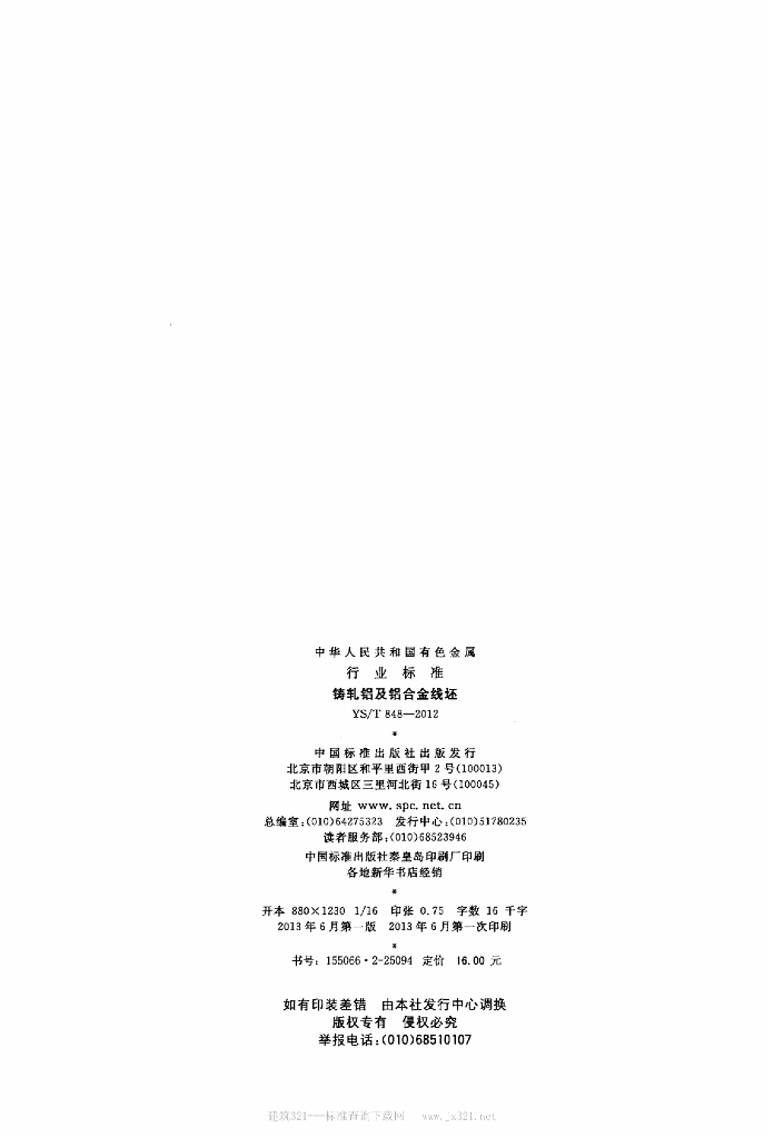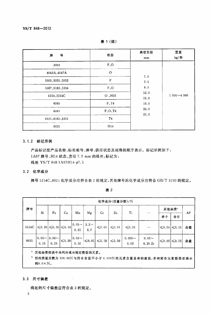 YS/T 848-2012 铸轧铝及铝合金线坯