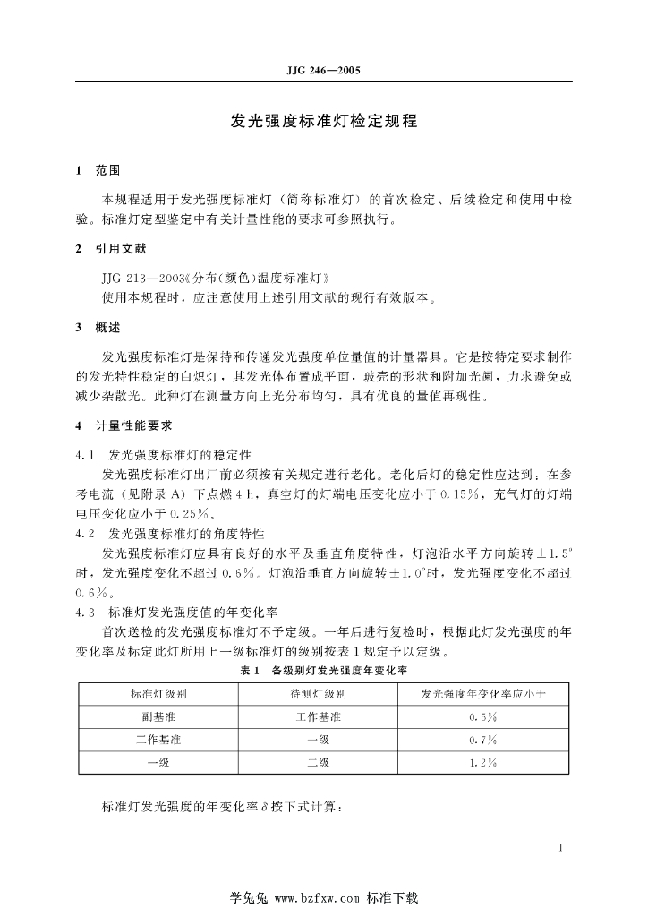 JJG 246-2005 发光强度标准灯