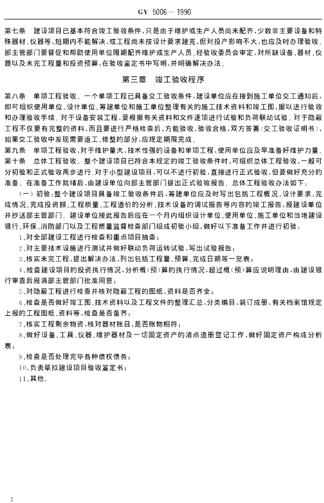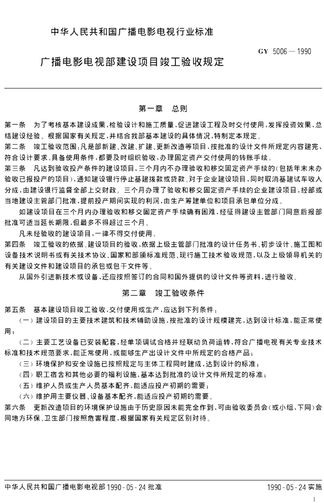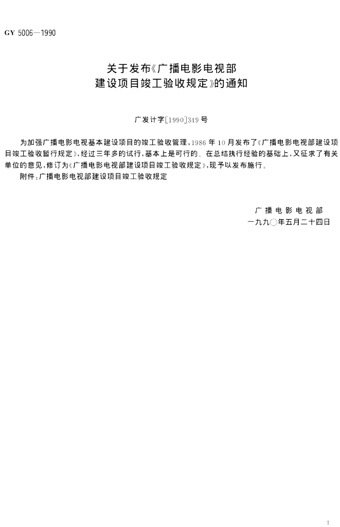 GY 5006-1990 广播电影电视部建设项目竣工验收规定