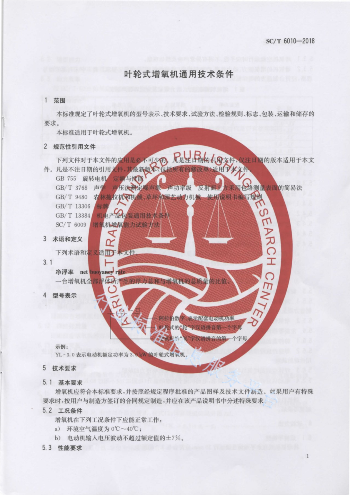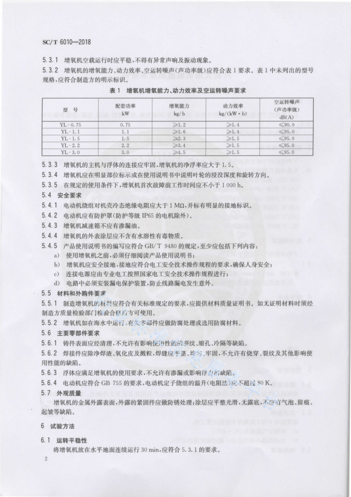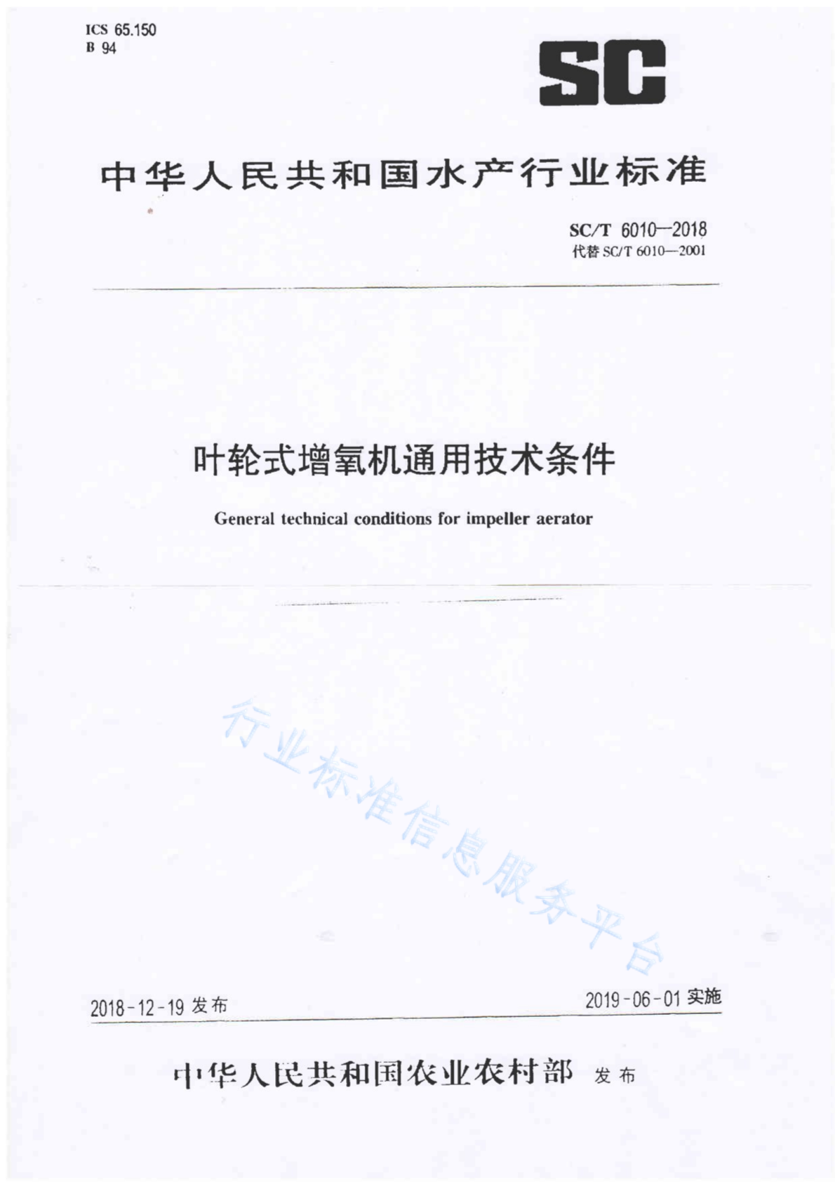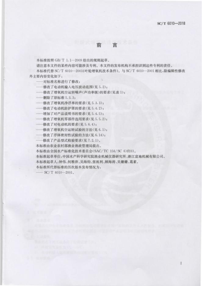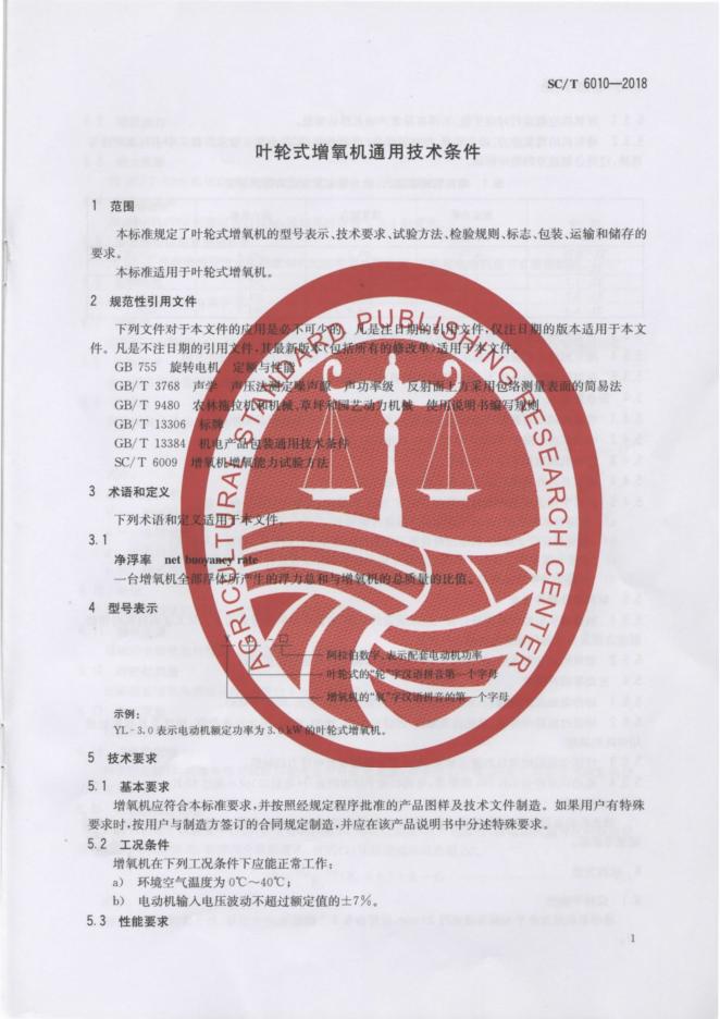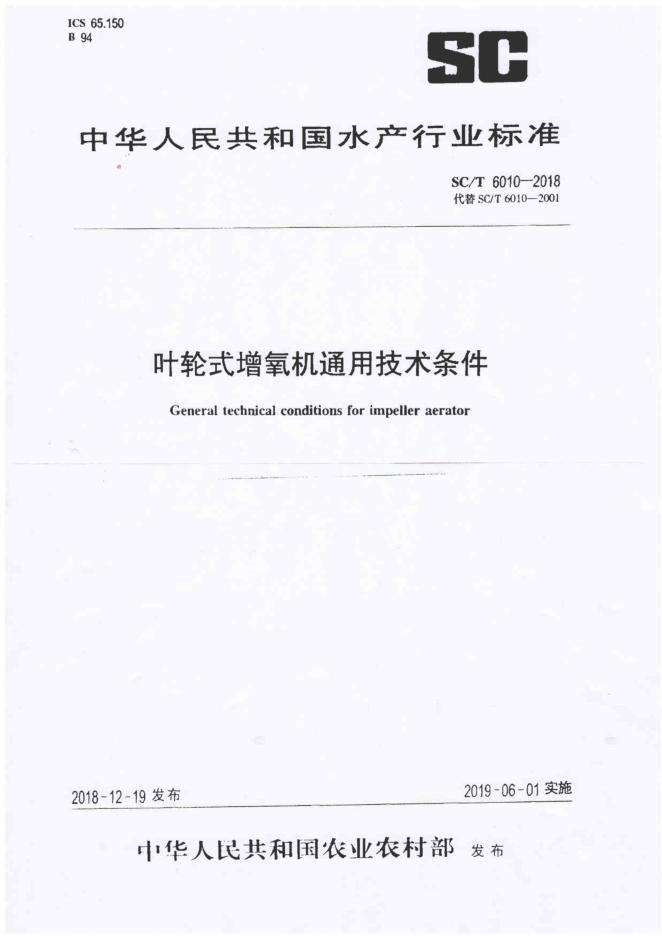 SC/T 6010-2018 叶轮式增氧机通用技术条件