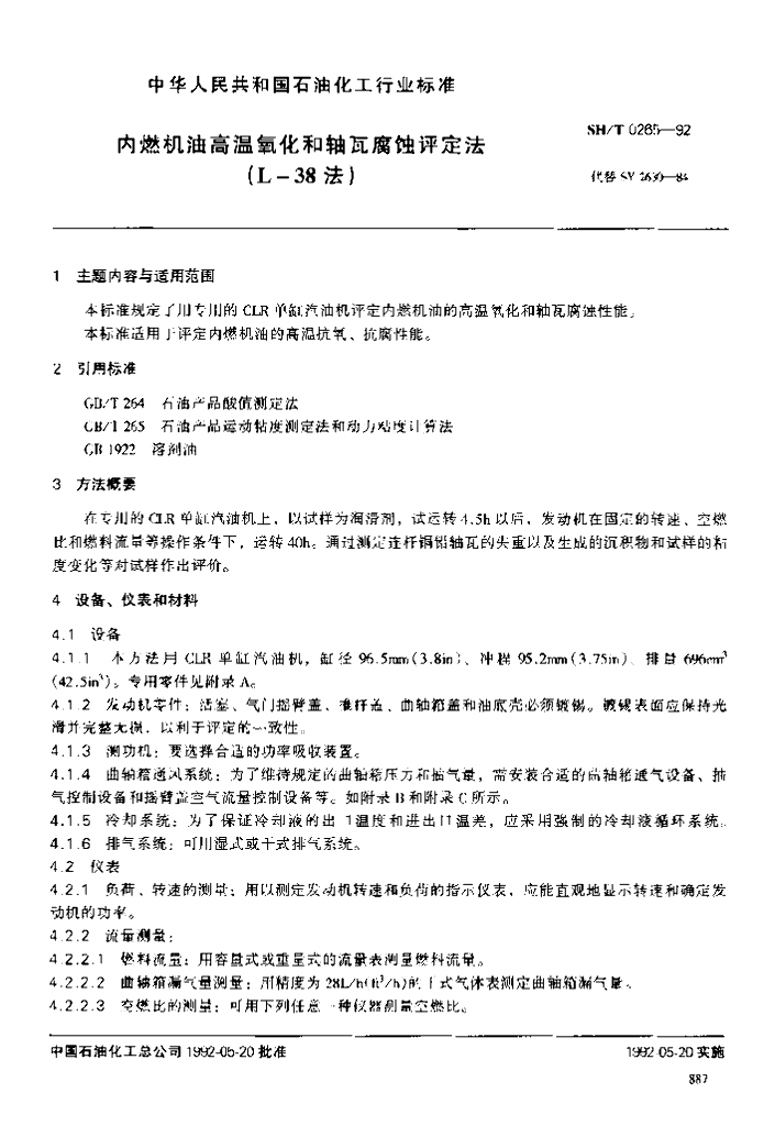 SH/T 0265-1992 内燃机油高温氧化和轴瓦腐蚀评定法(L-38法)