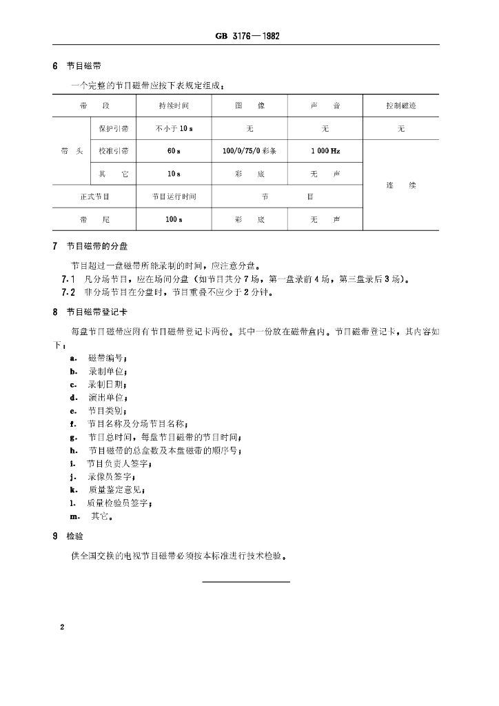 GB 3176-1982 25.4毫米电视节目磁带的录制和交换