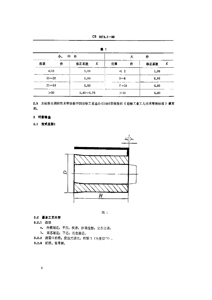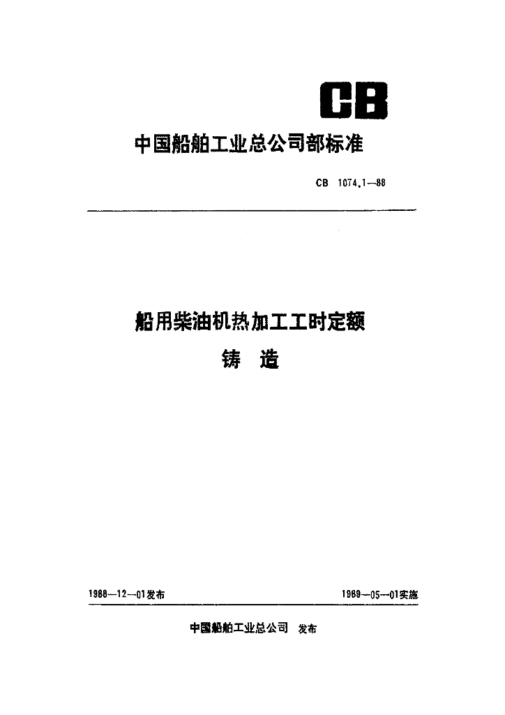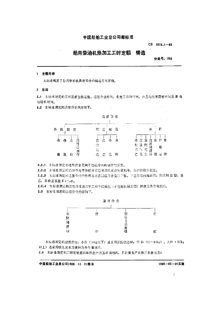 CB 1074.1-1988 船用柴油机热加工工时定额 铸造