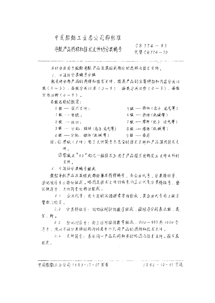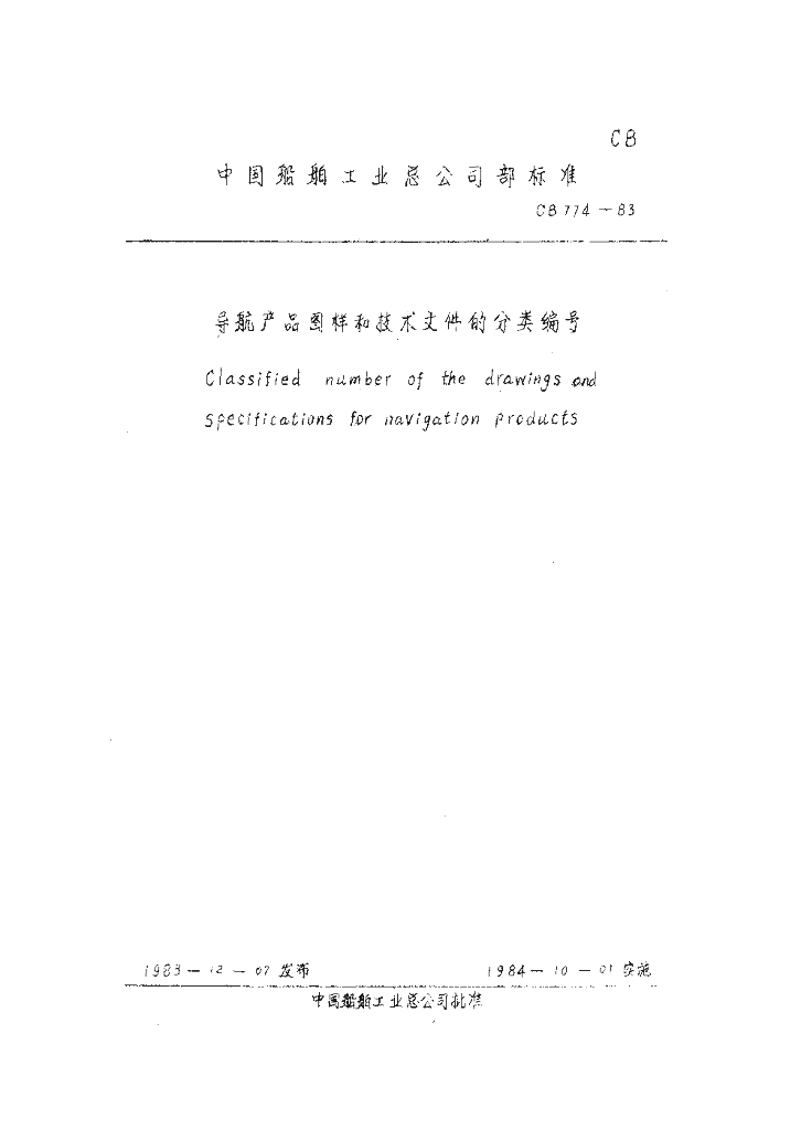 CB 774-1983 导航产品图样和技术文件的分类编号