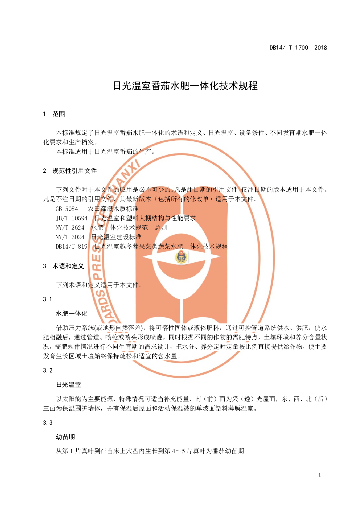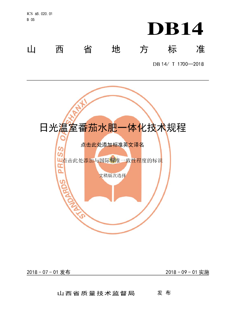 DB14/T 1700-2018 日光温室番茄水肥一体化技术规程