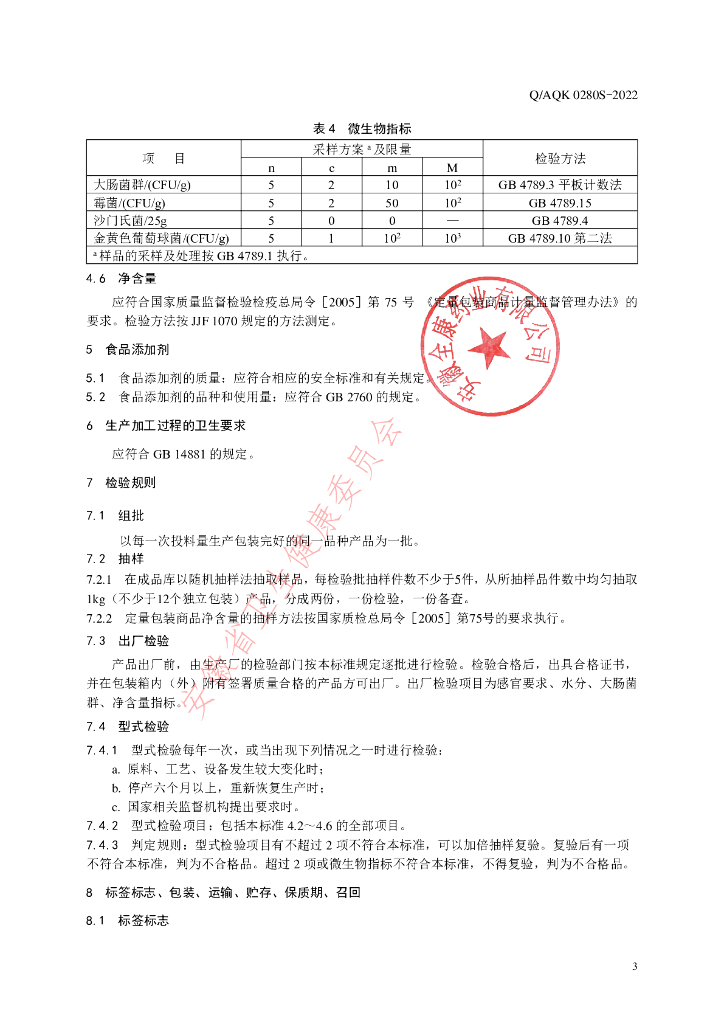 Q/AQK 0280S-2022 驼乳益生元益生菌冻干粉(其他方便食品)