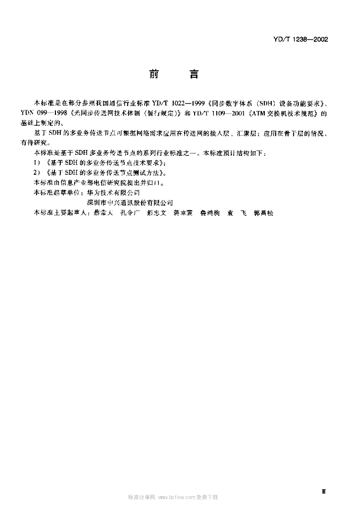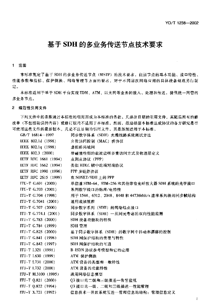 YD/T 1238-2002 基于 SDH 的多业务传送节点技术要求