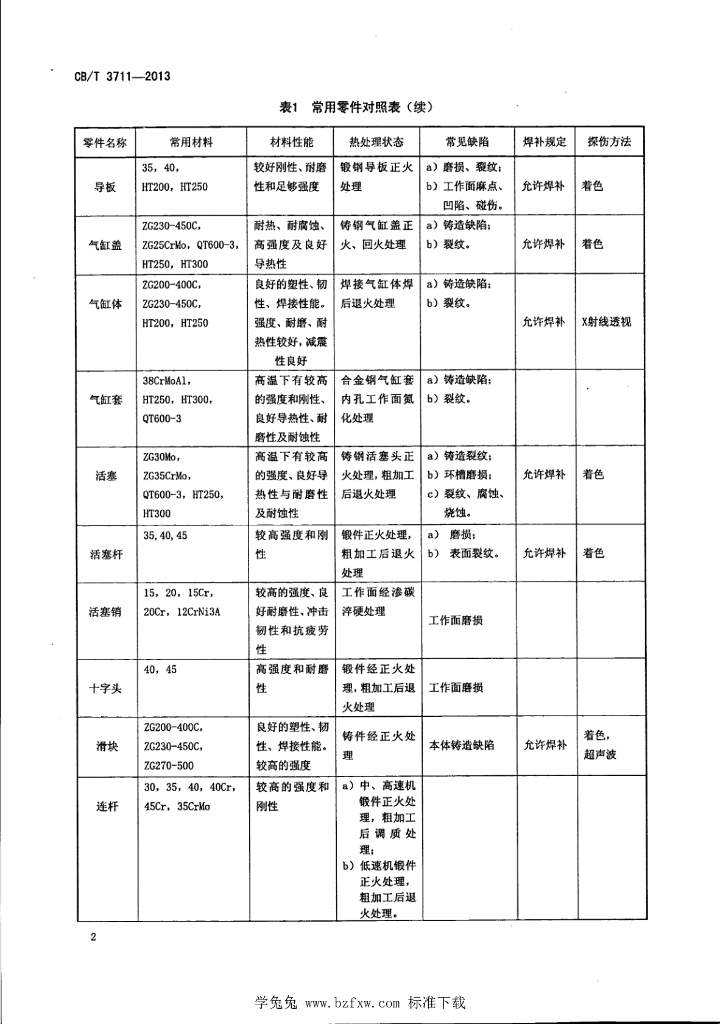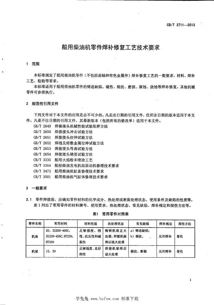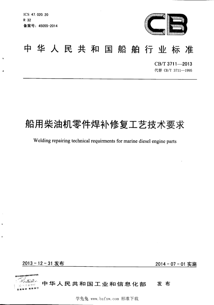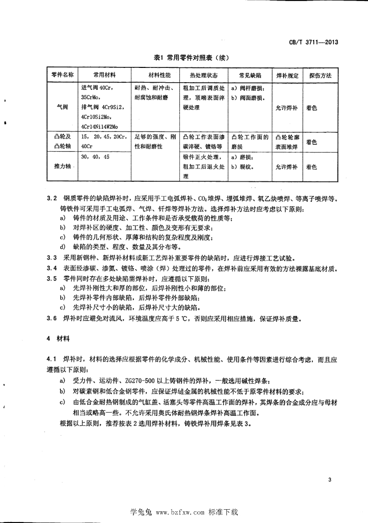 CB/T 3711-2013 船用柴油机零件焊补修复工艺技术要求