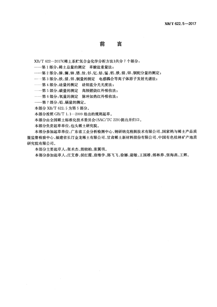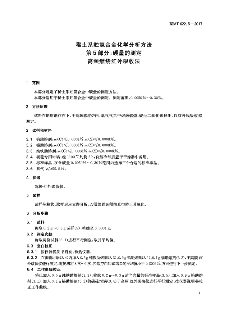 XB/T 622.5-2017 稀土系贮氢合金化学分析方法 第5部分:碳量的测定 高频燃烧红外吸收法