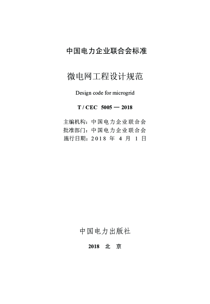 T/CEC 5005-2018 微电网工程设计规范