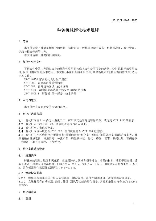 DB13/T 6162-2025 种鸽机械孵化技术规程