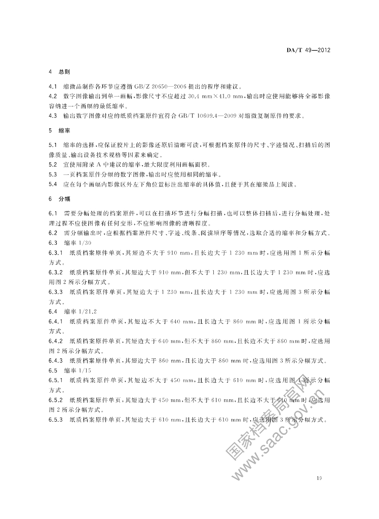DA/T 49-2012 特殊和超大尺寸纸质档案数字图像输出到缩微胶片上的技术规范