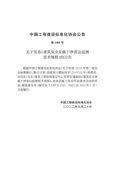 T/CECS 1165-2022 建筑安全星载干涉雷达监测技术规程