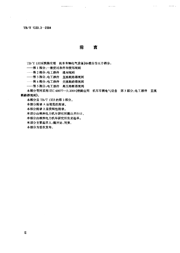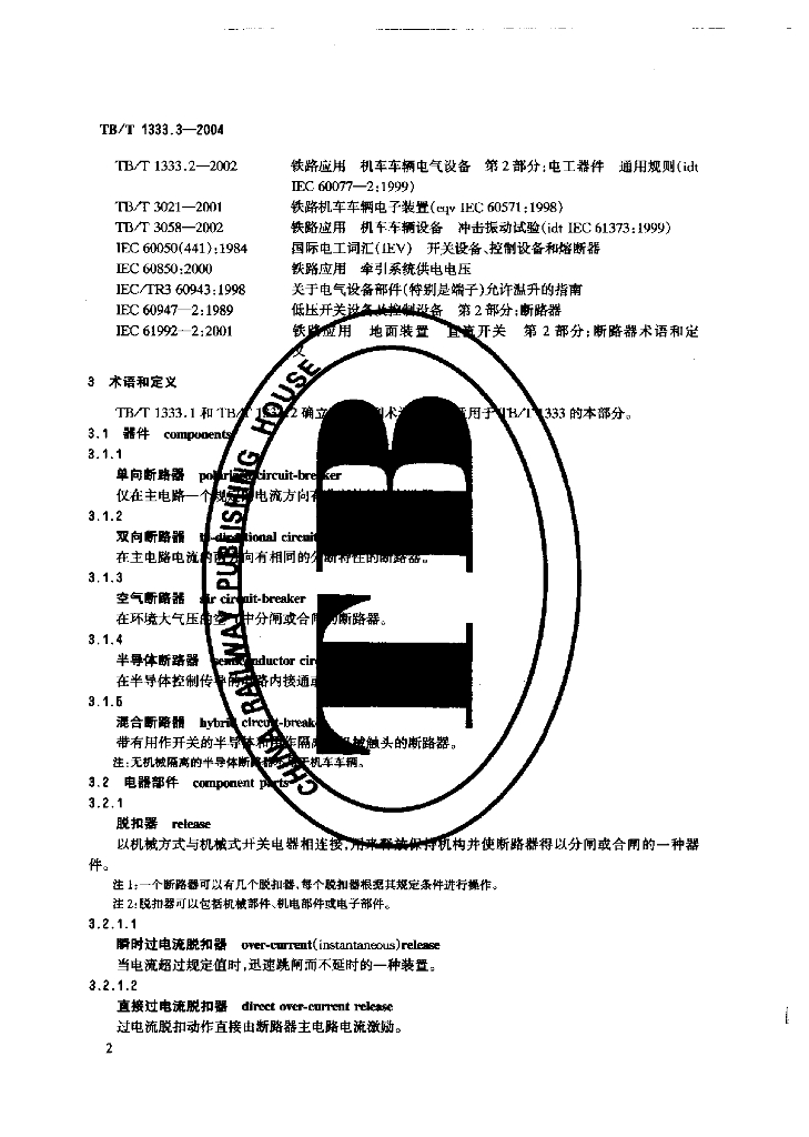 TB/T 1333.3-2004 铁路应用 机车车辆电气设备 第3部分:电工器件 直流断路器规则