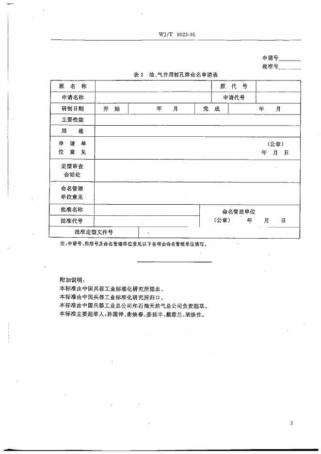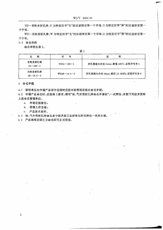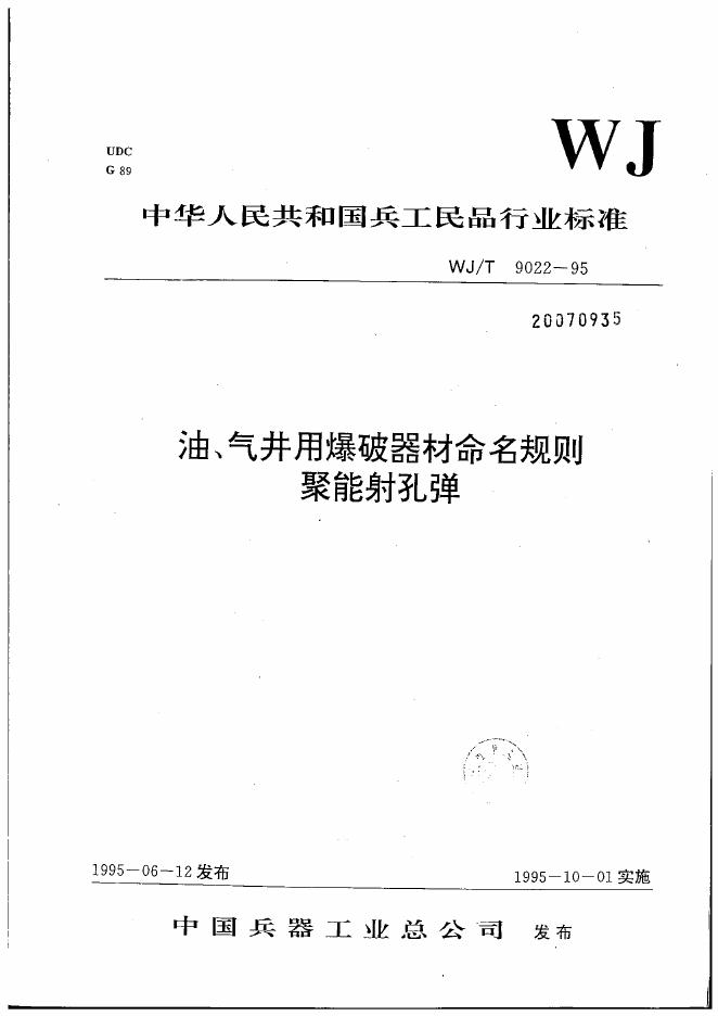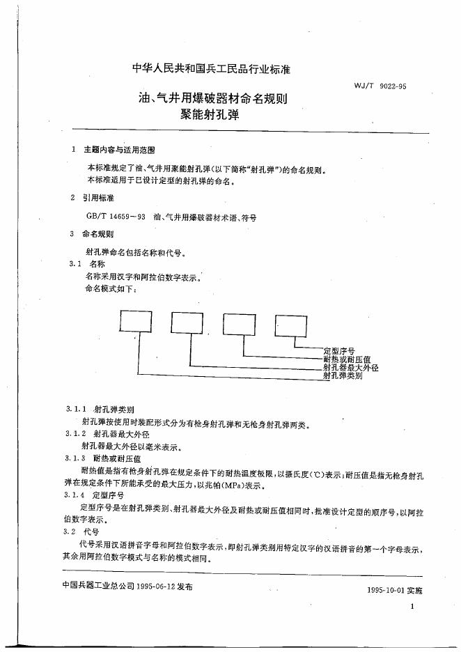WJ/T 9022-1995 油,气井用爆破器材命名规则聚能射孔弹