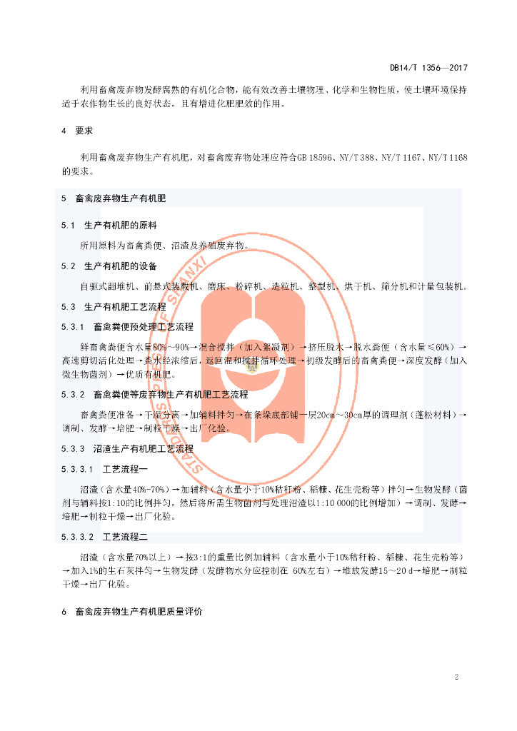 DB14/T 1356-2017 利用畜禽废弃物生产有机肥技术规程