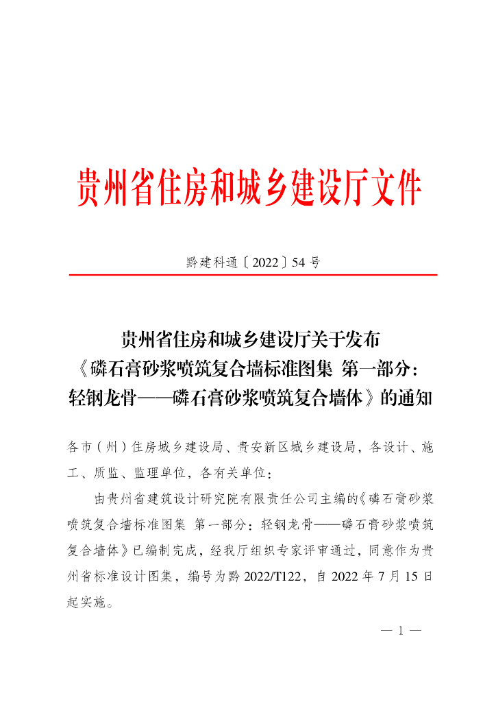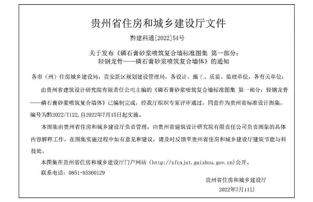 黔2022/T122 贵州省磷石膏砂浆喷筑复合墙标准图集 第一部分:轻钢龙骨——磷石膏砂浆喷筑复合墙体