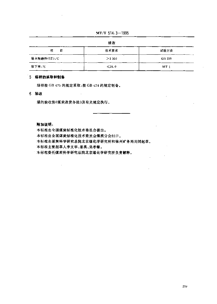 MT/T 514.3-1995 蒸汽机车用徐州矿务局煤技术条件