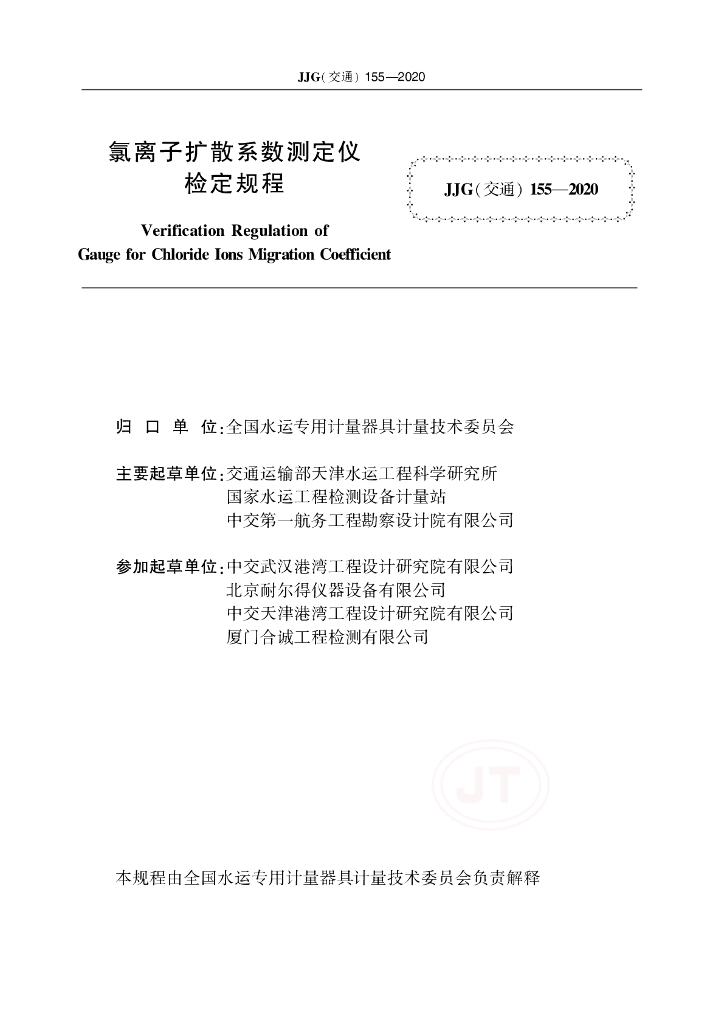 JJG(交通)155-2020 氯离子扩散系数测定仪